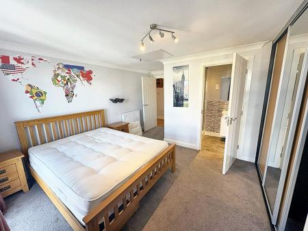 Bedroom One: A generously sized double bedroom, neutrally decorated and carpeted for comfort. This room benefits from built in wardrobes and a contemporary ensuite shower room.