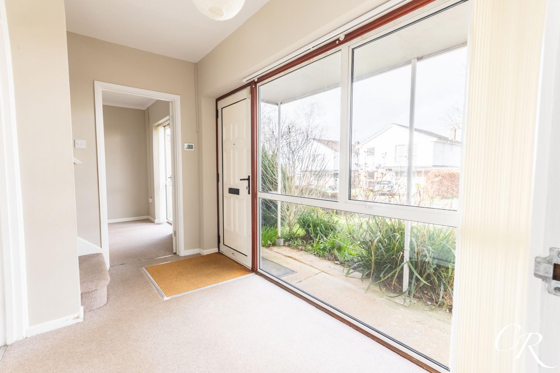 Entrance Hall: A bright and welcoming entrance hall with a large picture window overlooking the front garden, filling the space with natural light. Stairs rise to the first floor and doors lead to the principal ground floor rooms. A useful ground floor cloakroom is positioned off the hallway.