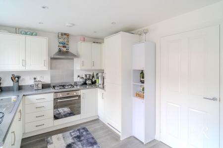 Kitchen / Breakfast Room: Positioned at the rear of the property, the kitchen offers a bright and functional space with plenty of room for a breakfast table. Well-appointed with white wooden cabinetry, stylish worktops, and integrated appliances such as an electric oven, gas hob and extractor fan, it’s ideal for both everyday meals and entertaining. The rear door provides direct access to the enclosed garden.
