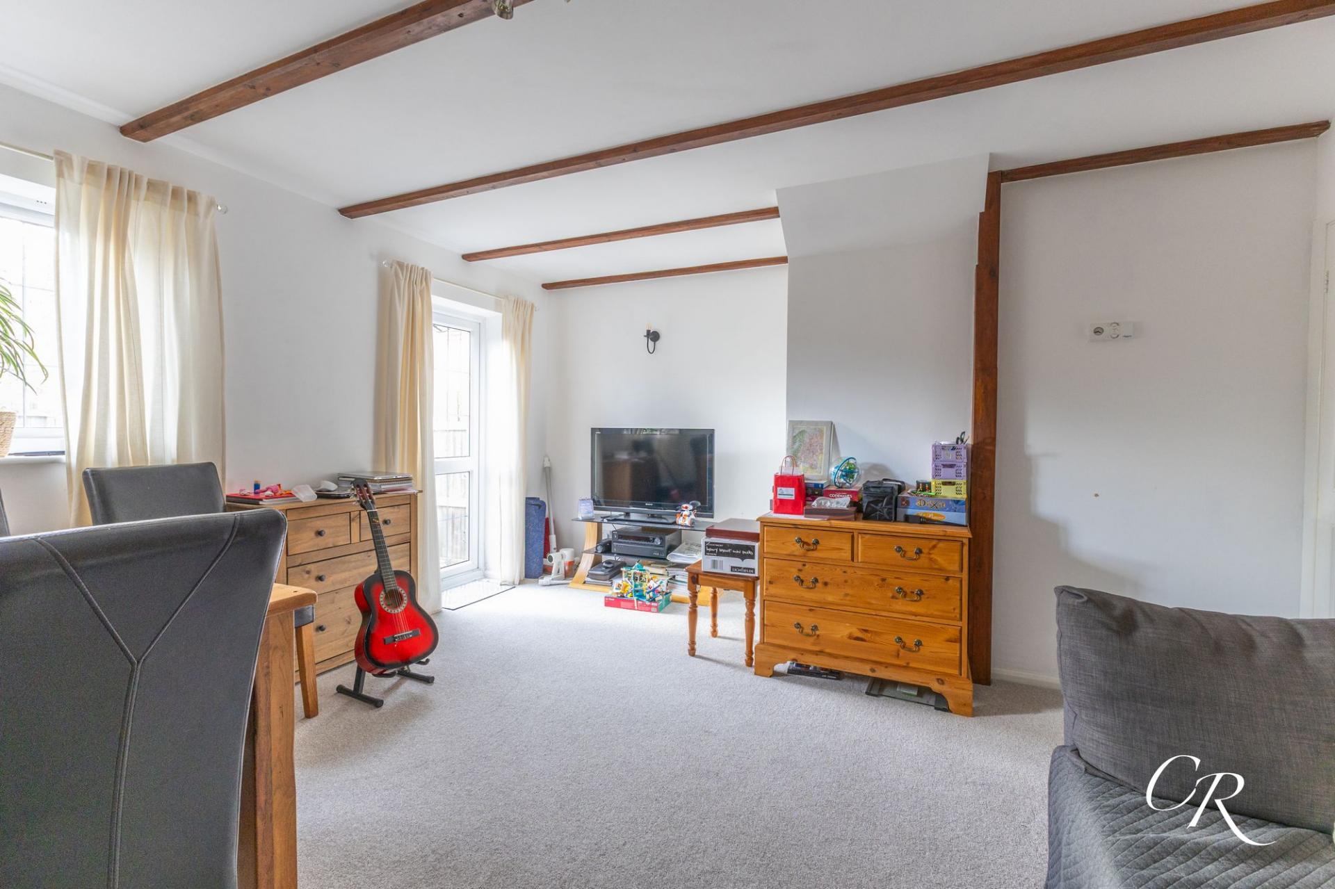 Sitting Room: Positioned at the rear of the property, the sitting room is a generous and inviting space featuring exposed beams, an under-stairs storage cupboard, and access to the rear garden.