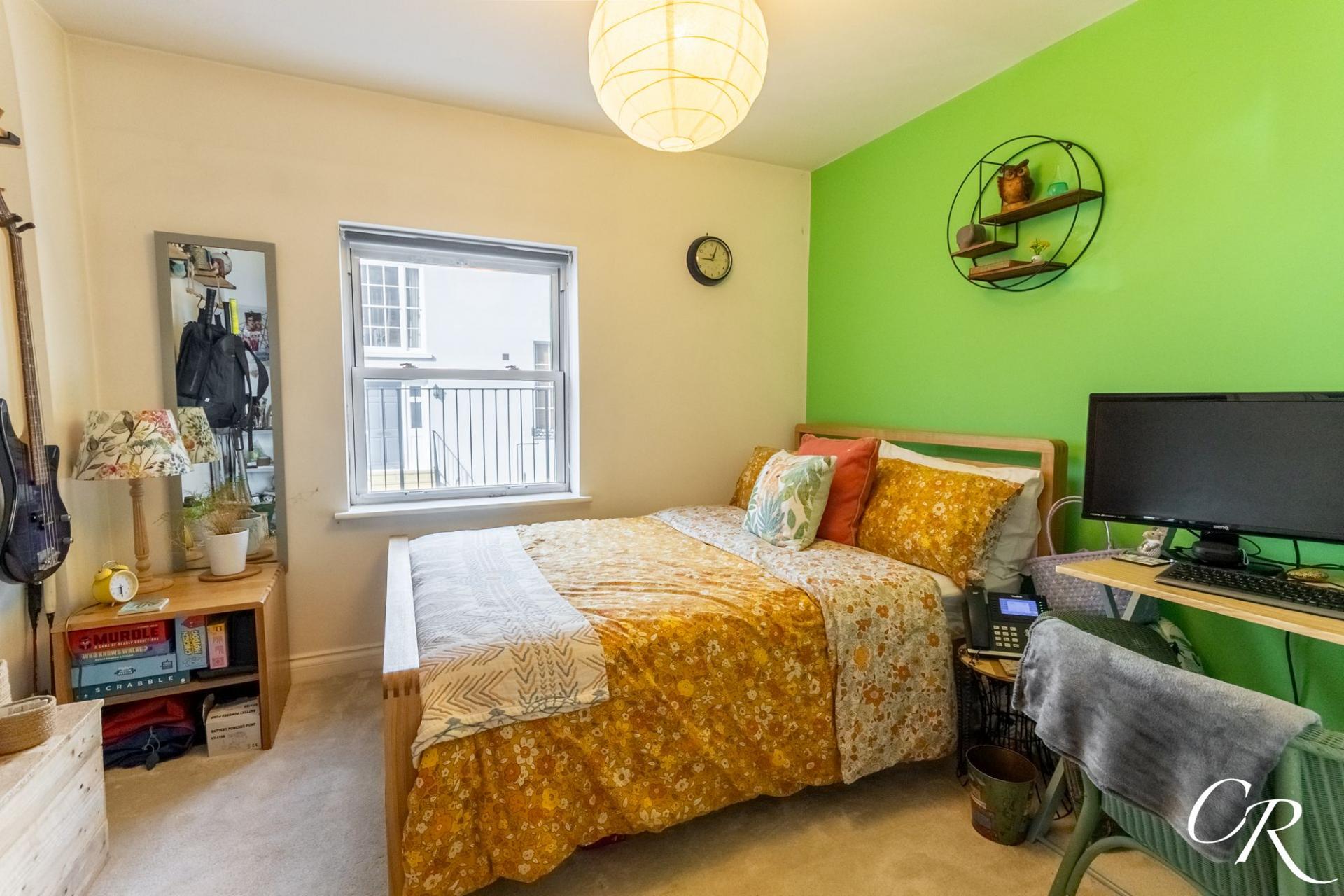 Bedroom Two: A well-proportioned second double bedroom with pleasant outlook, ideal as a guest room, home office or additional bedroom.