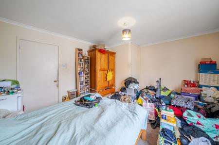 Bedroom One: A generous double bedroom located at the front of the property, featuring a large window allowing natural light and a useful built-in storage cupboard. There is ample space for additional furnishings, creating a comfortable and practical main bedroom.