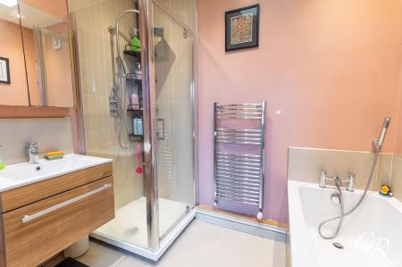 Ground Floor Bathroom: The property benefits from a spacious ground floor bathroom fitted with a bath, separate shower enclosure, wash basin with vanity storage and WC.