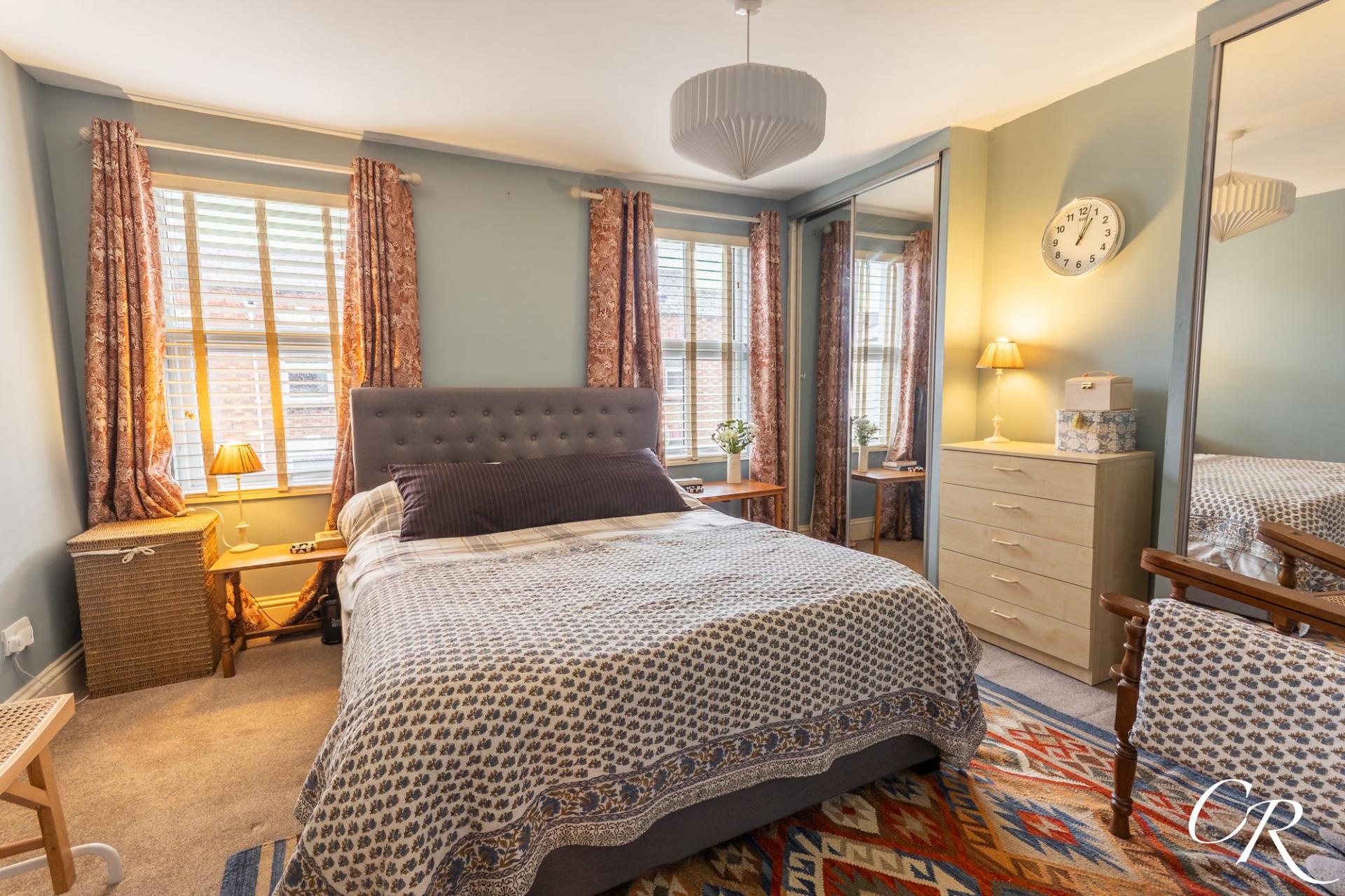 Bedroom One: A generously sized principal bedroom positioned to the front of the property with two windows allowing for excellent natural light. The room also benefits from fitted wardrobes providing useful storage.