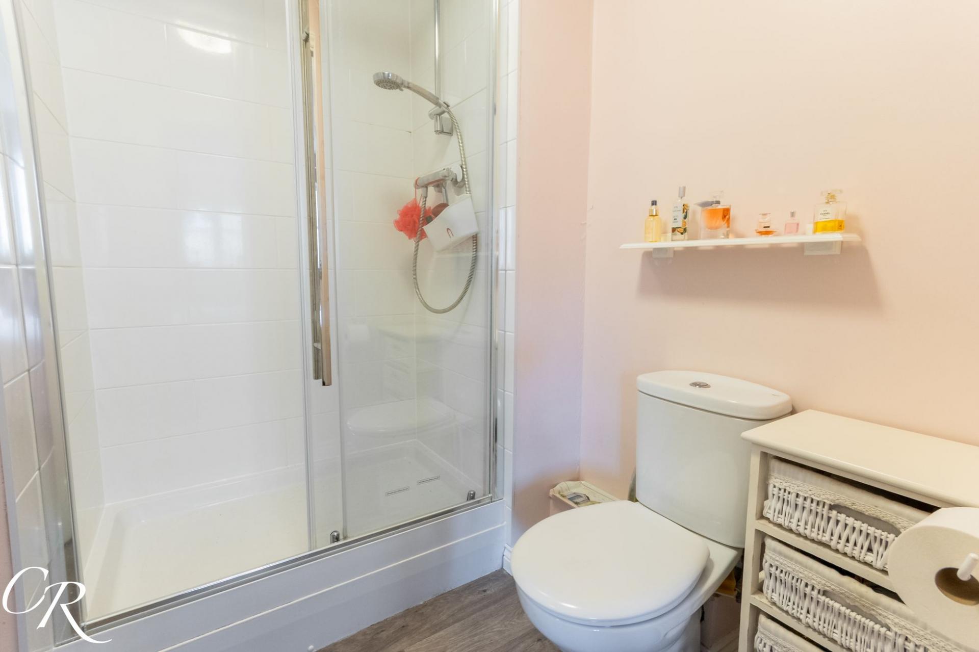 Ensuite: A modern ensuite comprising a shower enclosure, WC and wash-hand basin.