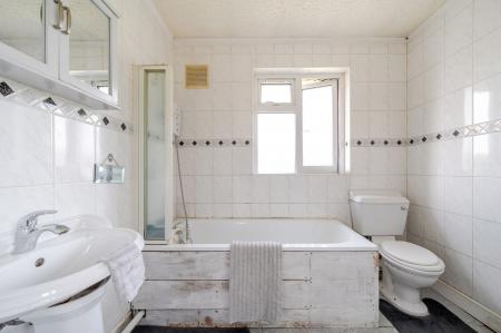 Bathroom: Currently fitted with a panelled bath, WC, and wash basin, offering scope for updating.