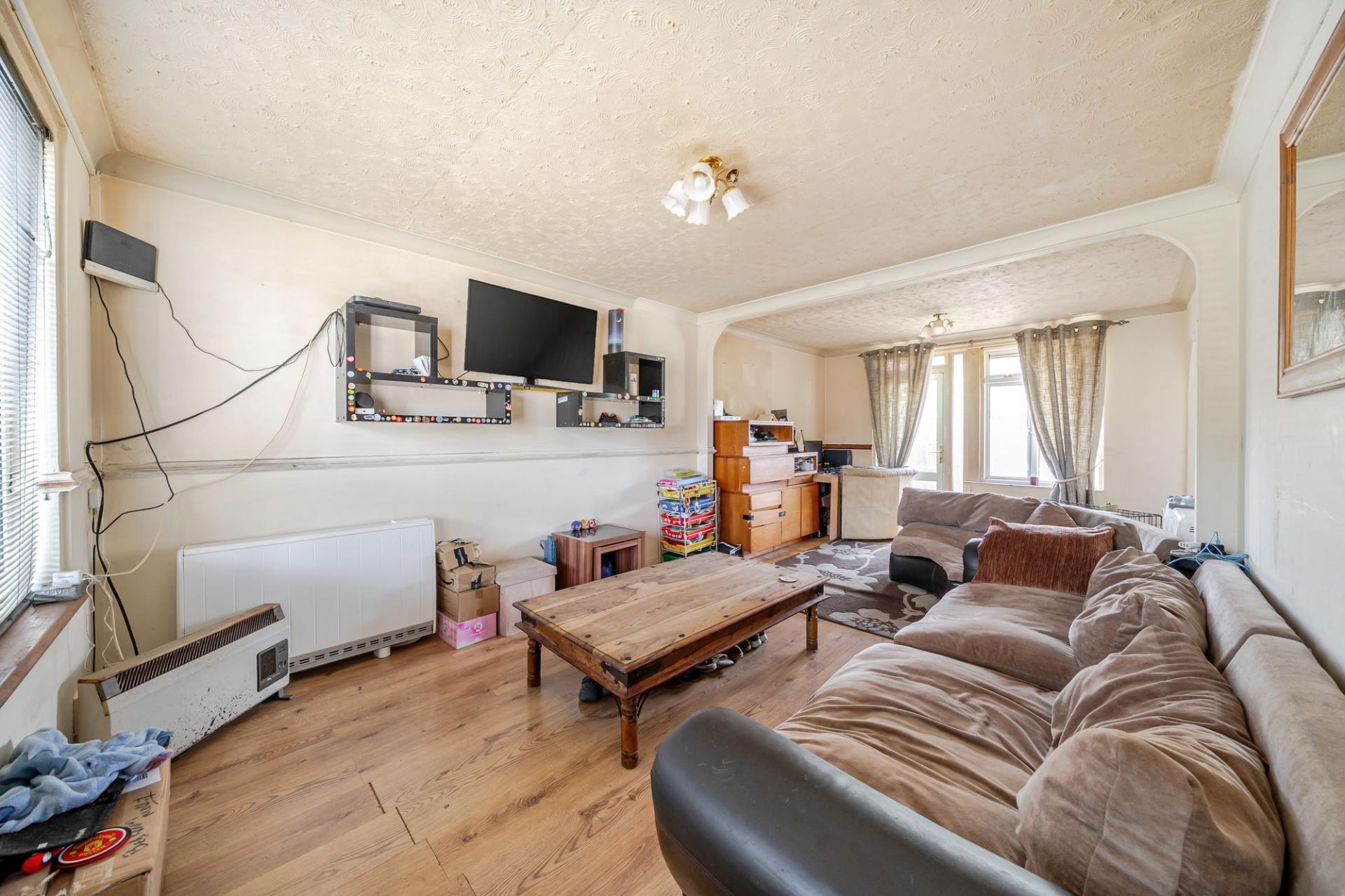 Reception / Dining Room: A spacious room running the full depth of the property, providing ample space for both living and dining areas. A large front-facing window and rear door allow for good natural light and direct access to the garden.