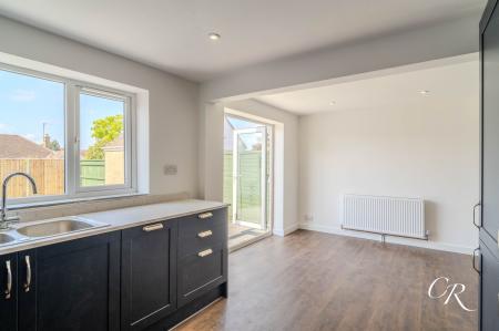 Kitchen / Dining Room: The kitchen/dining space is fitted with a newly installed Howdens kitchen, offering a smart and stylish aesthetic with sleek cabinetry, integrated appliances, and generous worktop space. The dining area enjoys a garden outlook, making it a sociable and functional space at the heart of the home.