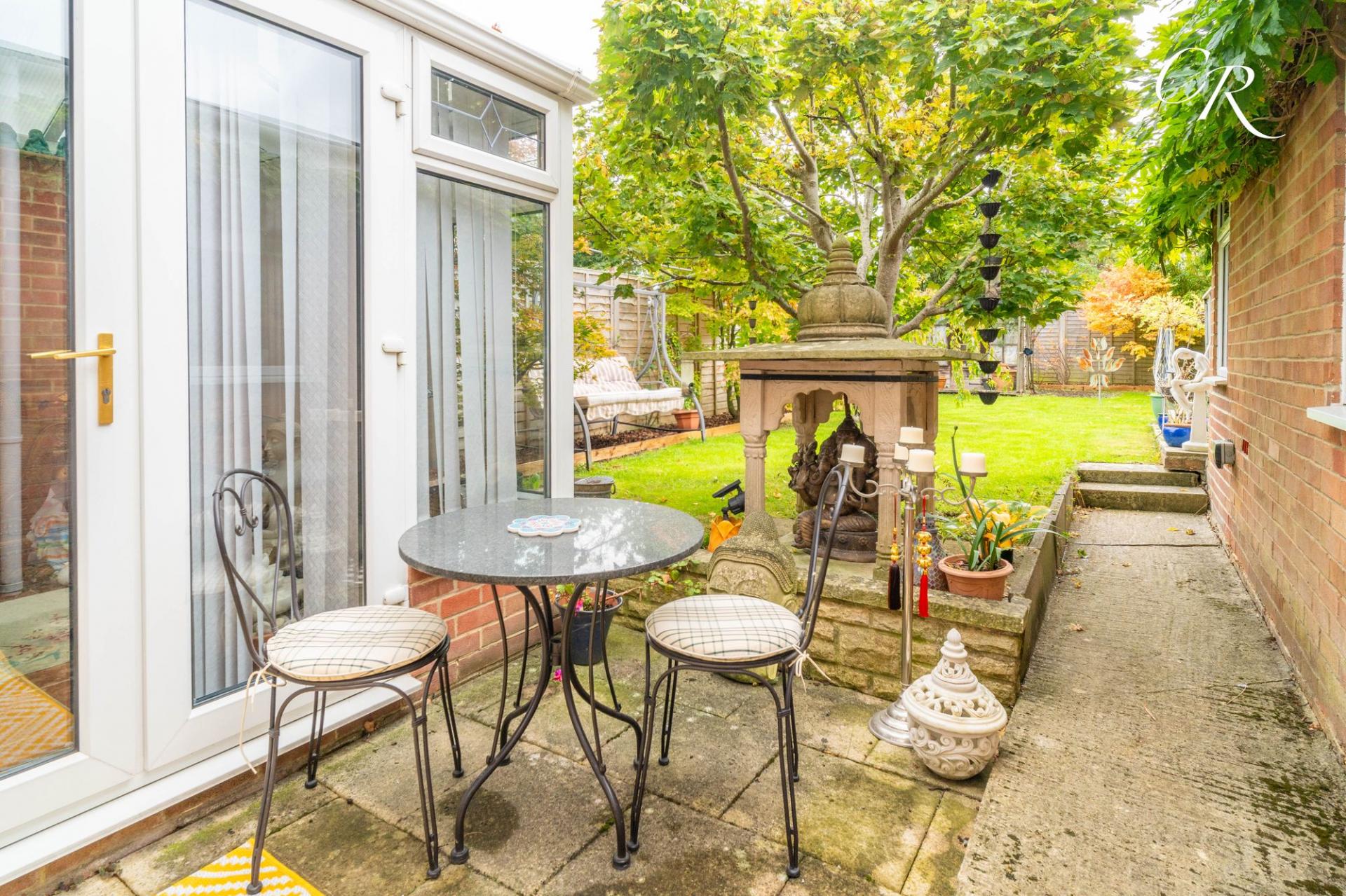 Conservatory: Accessed from the dining room, the conservatory provides an additional versatile living space with tiled flooring and a pleasant aspect over the garden. It offers the ideal spot to enjoy the views of the beautifully maintained outdoor area throughout the year.