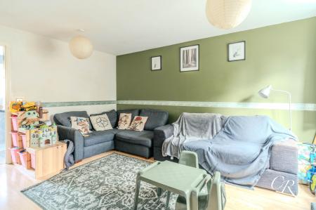 Sitting Room: Positioned to the front of the property, the sitting room offers a bright and inviting space ideal for everyday relaxation. A large window allows natural light to fill the room, creating a pleasant outlook over the front garden. The room is generously sized to accommodate both seating and entertainment furniture, finished with wood-effect flooring and neutral décor complemented by a feature wall. A door leads through to the kitchen/dining room at the rear of the house.