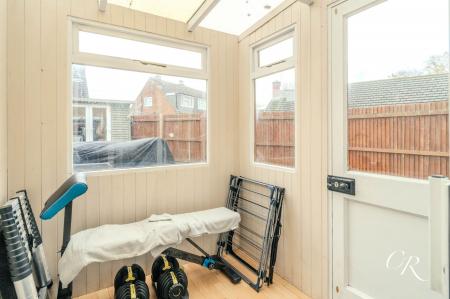 Conservatory: A versatile additional space currently used as a home gym, offering access to the rear garden through a side door.