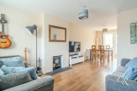 Sitting/Dining Room: A bright dual-aspect reception room extending the full depth of the property, offering space for both lounge and dining furnishings. A feature wood-burning stove creates a cosy focal point, whilst the rear aspect benefits from sliding doors opening into the conservatory, allowing natural light to flow through.