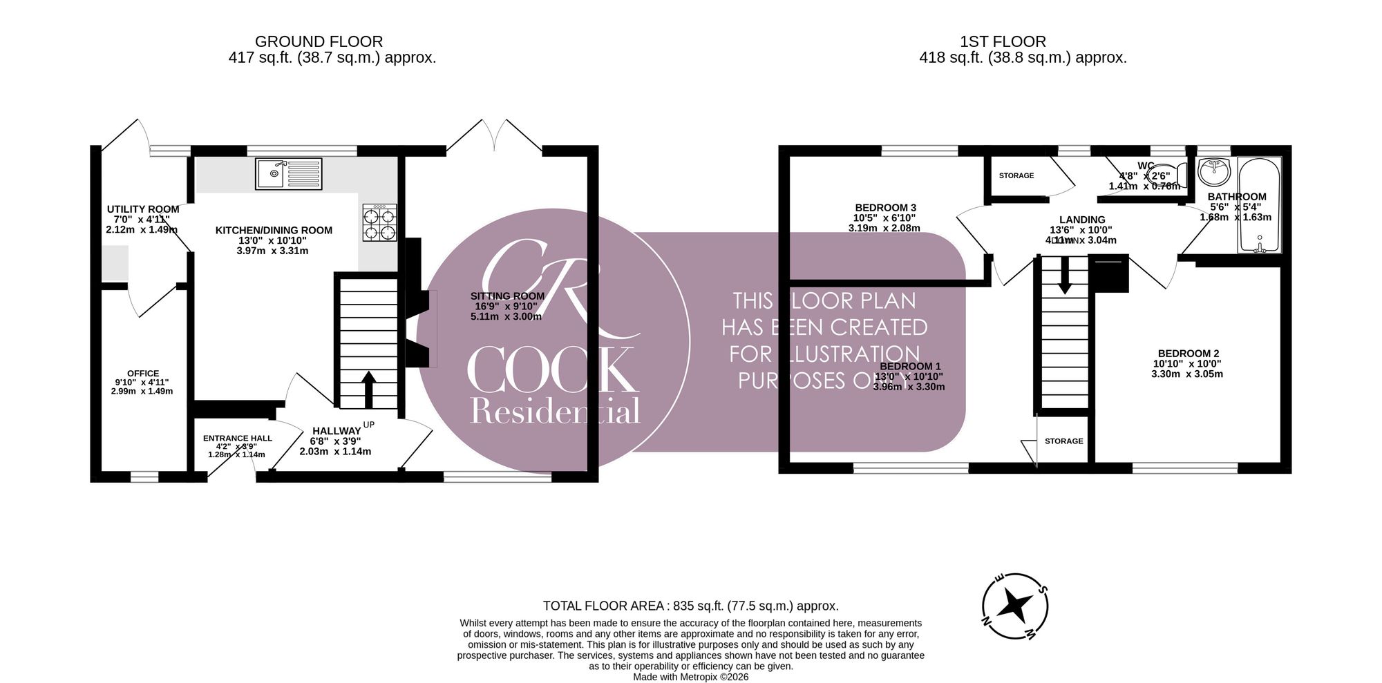 Important Notice: These particulars are prepared in good faith and do not form part of any contract. All measurements, descriptions, fixtures and fittings are approximate. Cook Residential accepts no liability for errors or omissions, and prospective purchasers should verify all details independently. All information relating to tenure and boundaries to be verified by purchaser’s solicitor. All measurements and details provided are for guidance only.