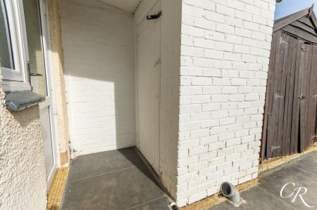 Outside: The property enjoys a generous rear garden with a large patio area ideal for outdoor seating and entertaining, leading onto a lawned section bordered by mature planting. There is a brick-built store located opposite the rear door, providing useful external storage, along with an additional shed. To the front, the property benefits from driveway parking for two vehicles.