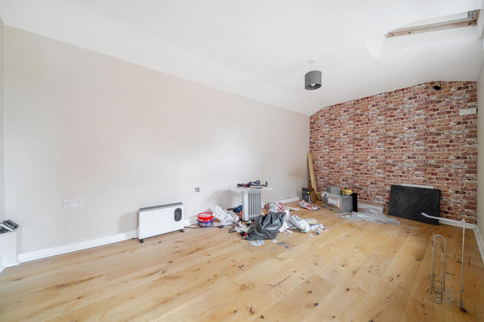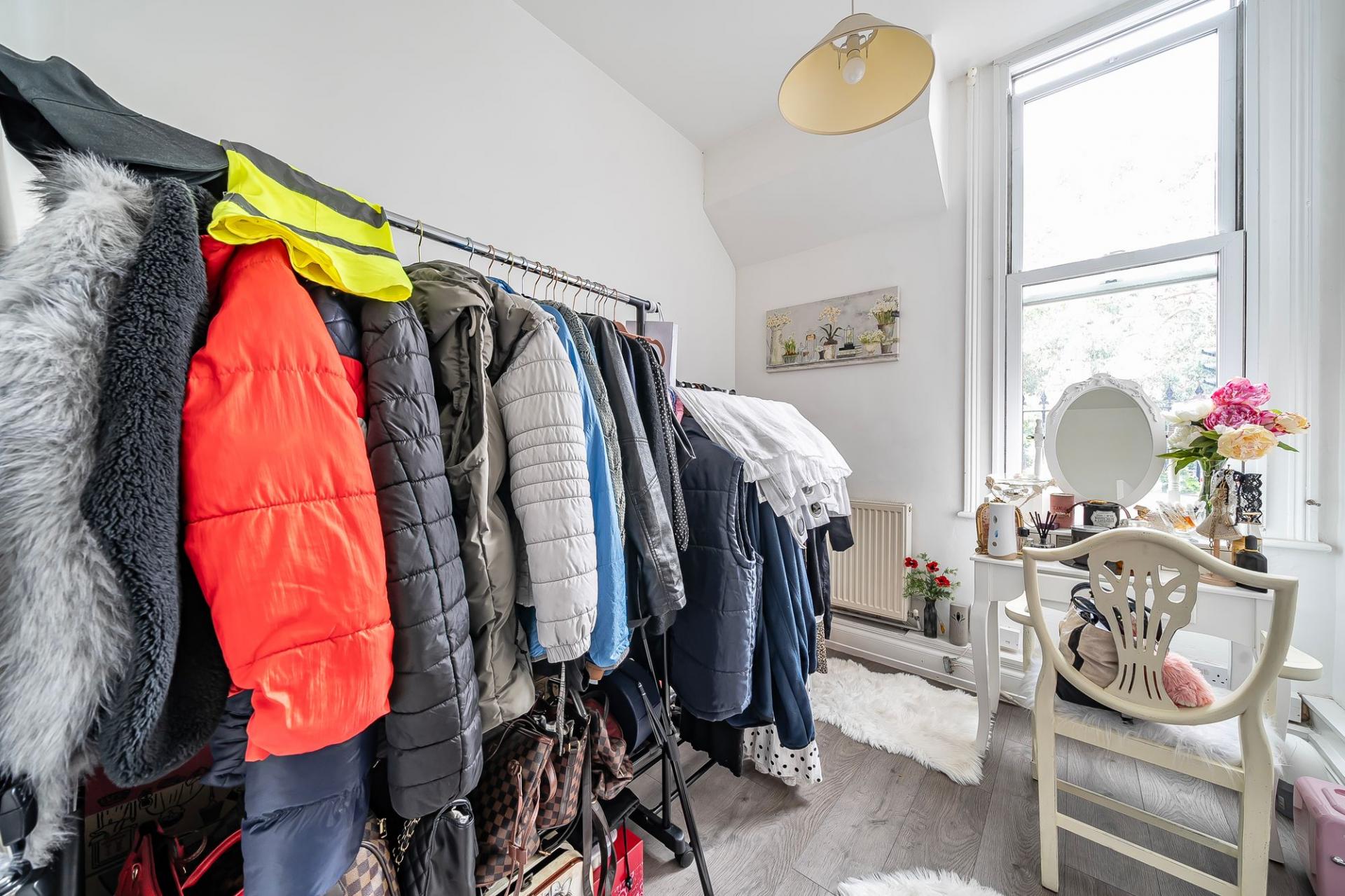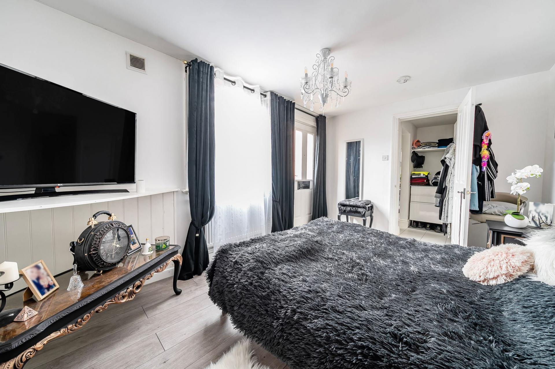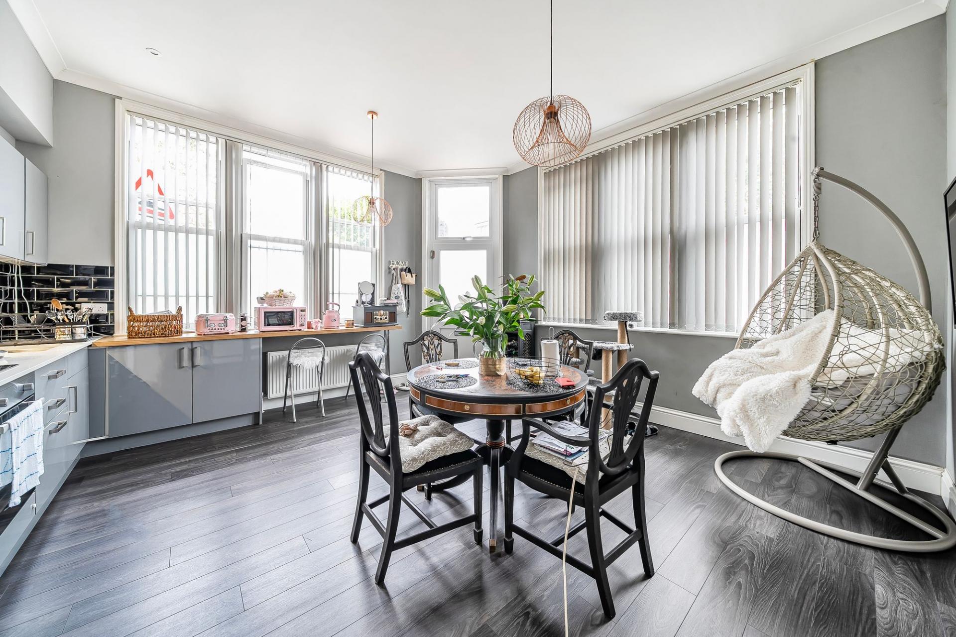 Bedroom One: Located at the front of the flat, the principal bedroom includes a large bay window and generous floor space.