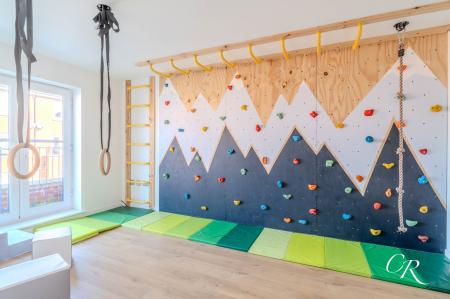 Sitting Room / Playroom: Situated at the front of the house, this versatile reception room features a Juliet balcony and wooden flooring, currently used as a children’s playroom but easily adaptable for use as a formal sitting room or home office.