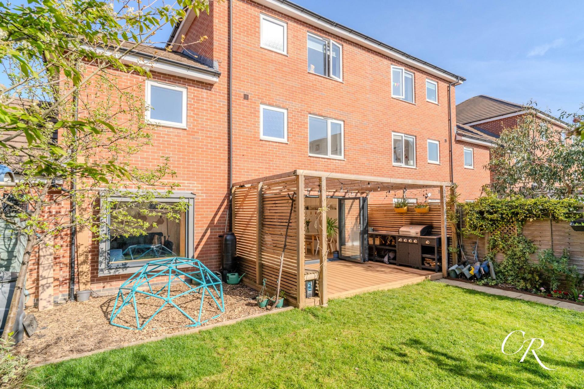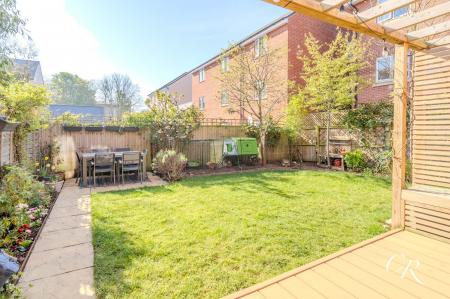 Rear Garden: The south-facing rear garden is a true highlight of the home. A large decked patio area, accessed via the bi-folding doors, creates the perfect space for alfresco dining, BBQs, and entertaining. Beyond the decked space, the garden is laid to lawn, offering a secure and private area for children to play or for keen gardeners to enjoy.