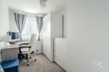 Bedroom Three: A versatile third bedroom currently used as a home office and dressing room, with a window to the rear.
