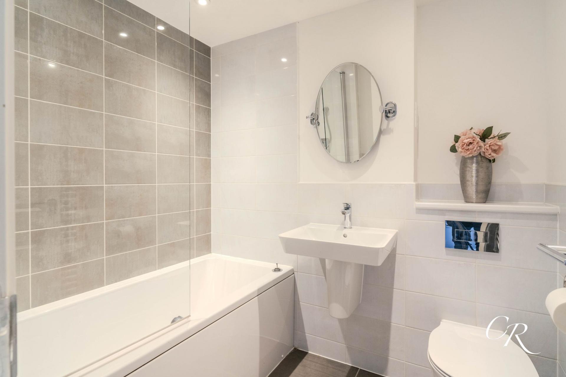 Ensuite: The ensuite includes a shower enclosure, wash basin, WC, and tiled surrounds.
