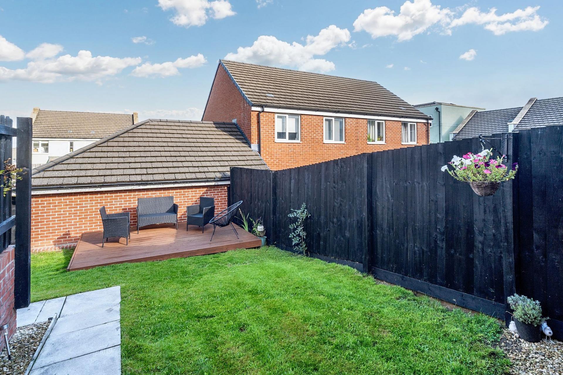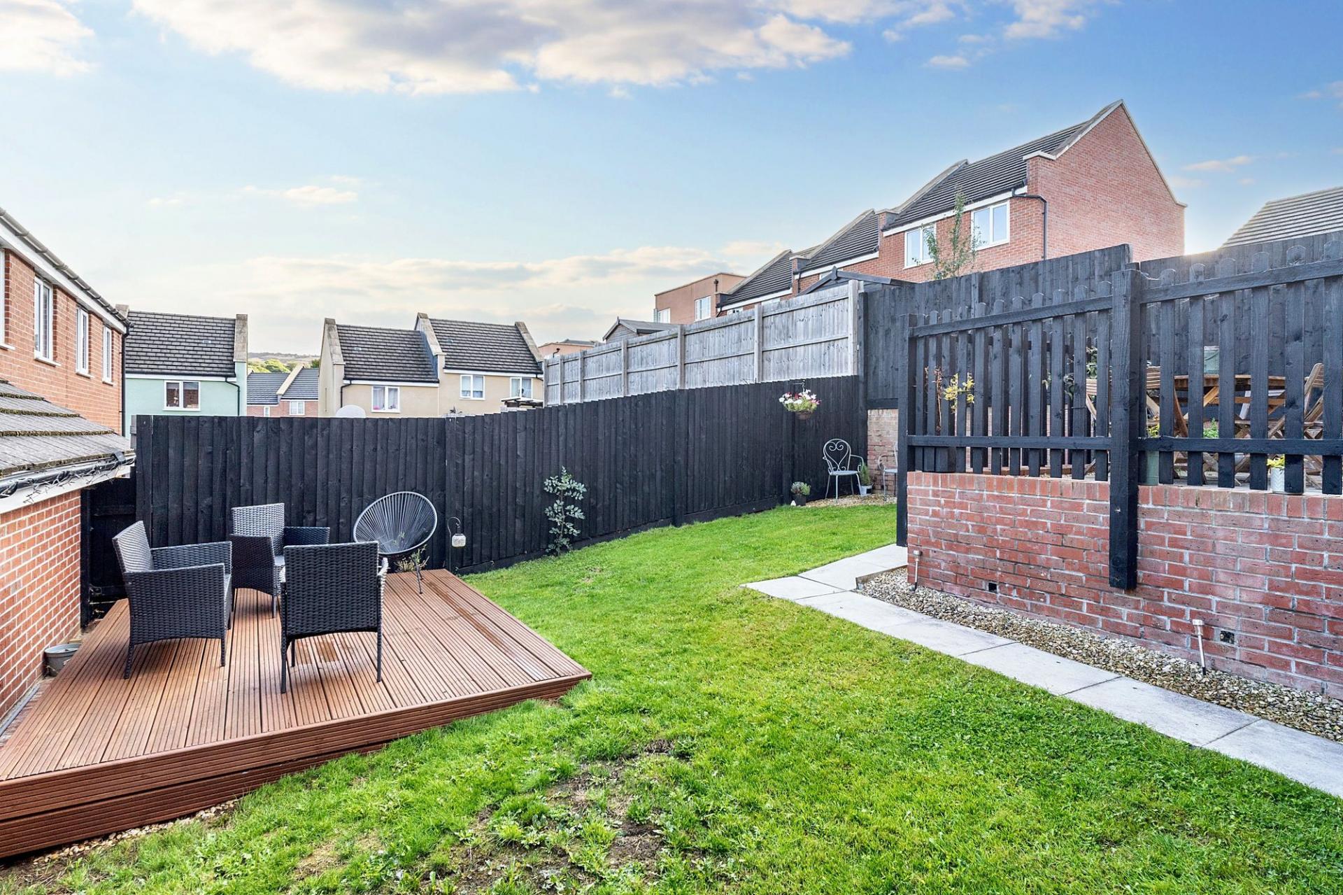Rear Garden: Designed with both relaxation and entertaining in mind, the rear garden combines a level lawn with a raised decked seating area and a patio directly off the kitchen/diner. Fully enclosed with fencing, it offers a safe and private environment for family living, summer gatherings, or simply unwinding outdoors.