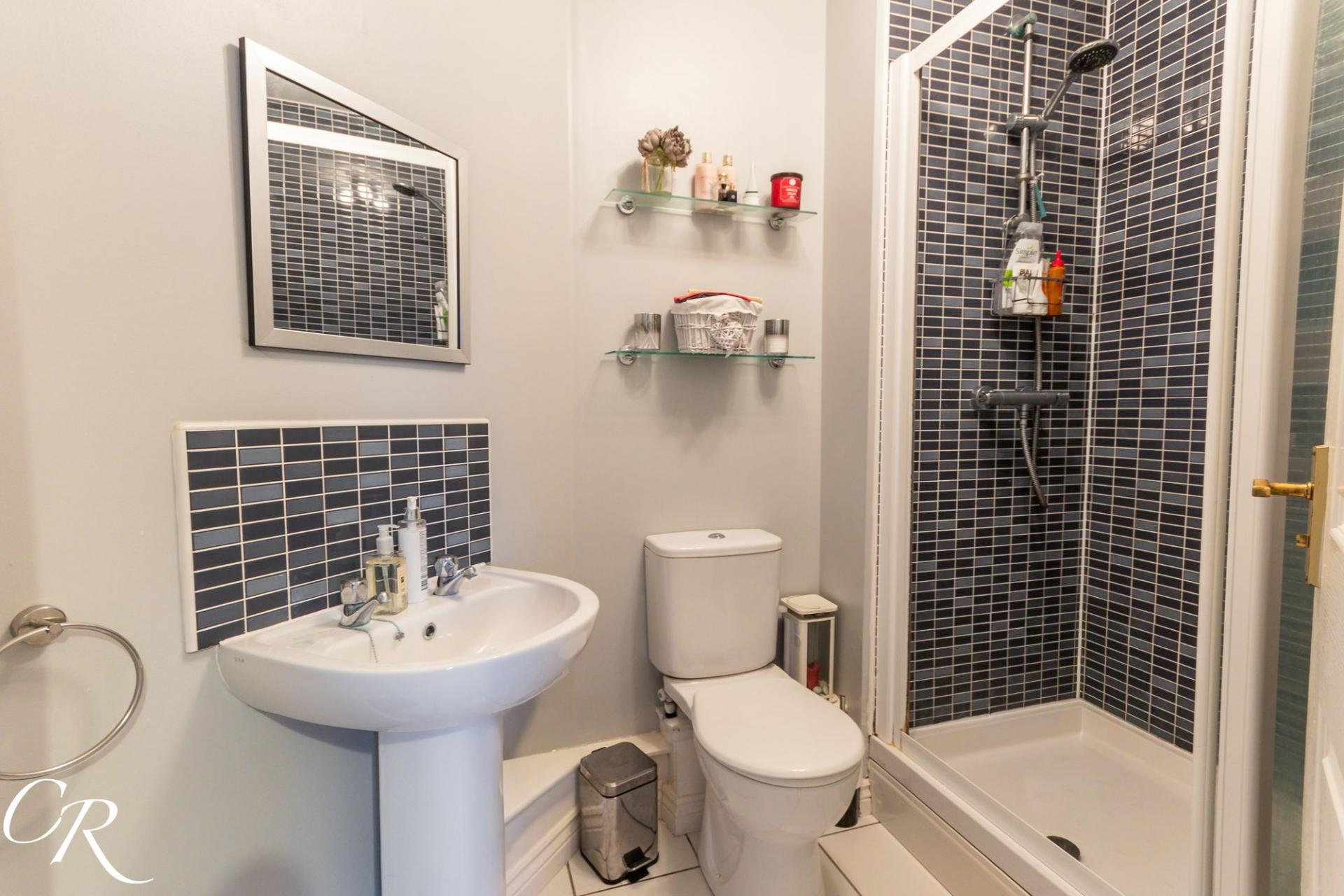 Ensuite: Fitted with a shower enclosure, WC and wash hand basin, finished in a clean and contemporary style.