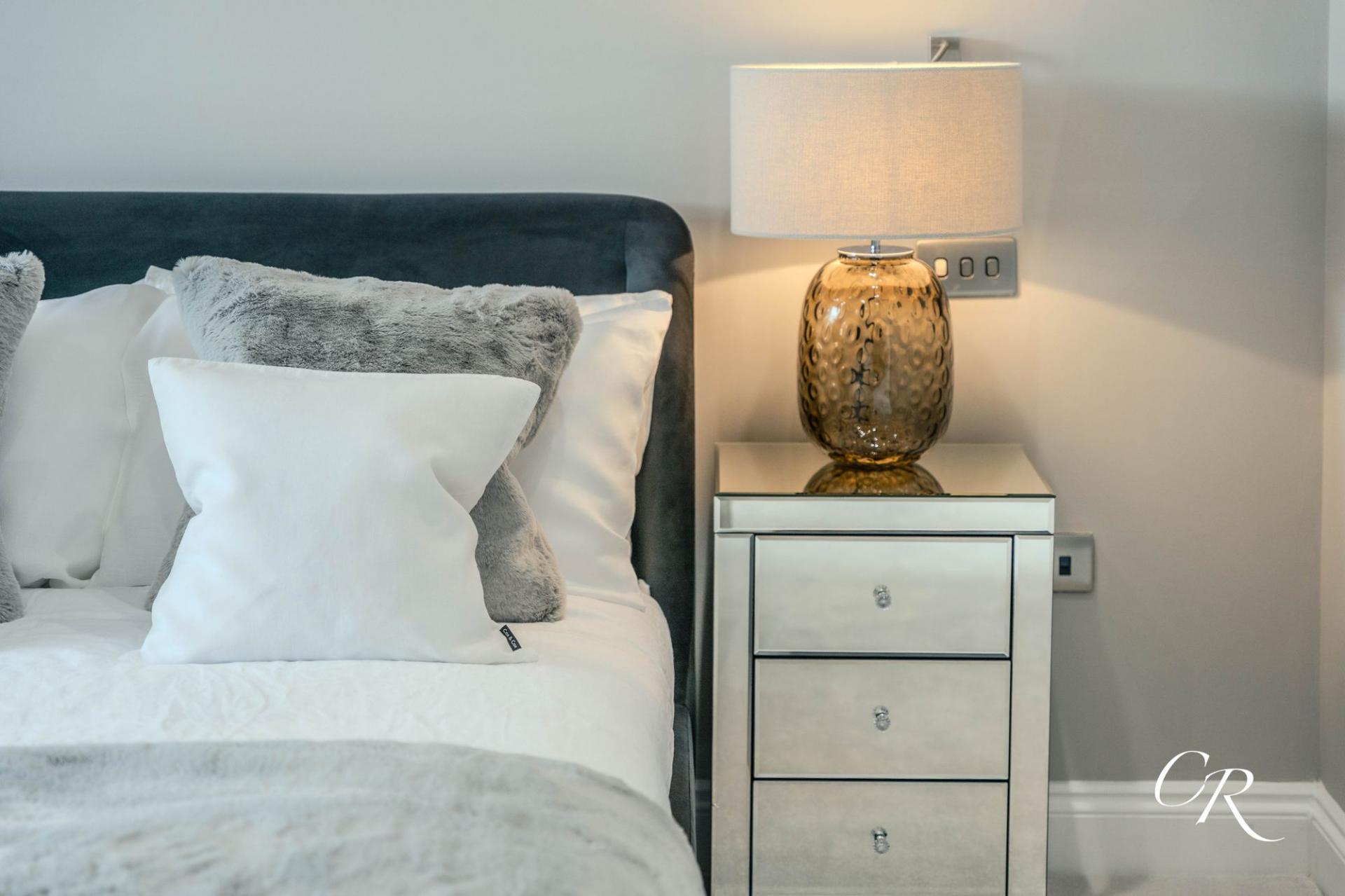 Bedroom Two: Also located on the first floor, this generous double bedroom includes built-in storage and its own beautifully appointed ensuite with walk-in shower, vanity basin, and WC, all presented in a soft neutral scheme with chrome fittings.