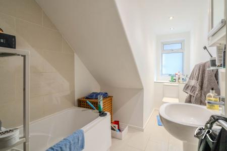 Bathroom: The bathroom has been recently refitted with a contemporary suite comprising a panelled bath with tiled surround and a separate walk in rainfall-style shower with glass screen, wash hand basin, WC, and a chrome heated towel rail. LED downlighters complete the stylish and modern finish.