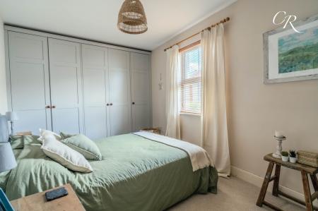 Bedroom One: A spacious double bedroom positioned to the front of the house, presented in soft tones with a bright aspect. A run of bespoke fitted wardrobes provides excellent storage, while still leaving ample space for additional furnishings. This restful retreat is both practical and stylish.