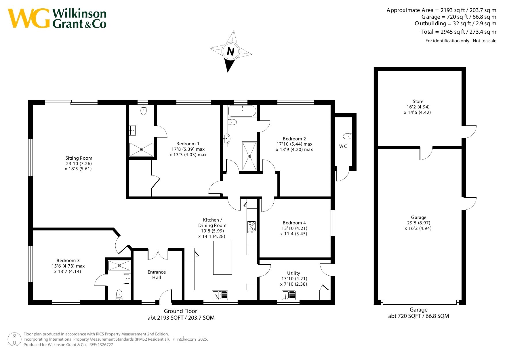 Adjoining the kitchen is a well-equipped utility room, featuring a comprehensive range of storage units, a sink unit, and designated space for laundry appliances. This practical and well-organised space also offers direct access to the garden.
