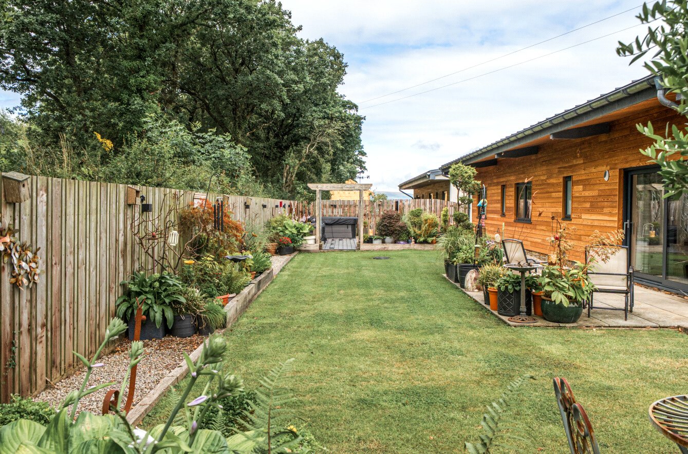 The garden is a particular highlight - a wonderful, private landscaped space featuring a manicured lawn, beautifully planted borders, and pleasant patio seating areas ideal for family living and entertaining. A hot tub is also included, offering the perfect place to unwind and enjoy the surroundings. The plant room housing the storage batteries also includes an additional WC accessible from outside
