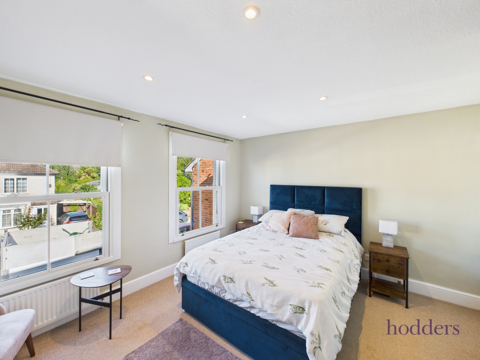 Situated on one of Chertsey's ever-popular residential roads, this charming home is ideally located just moments from the train station with direct services to London Waterloo, and within walking distance of the historic town centre with its wide range of shops, cafés, restaurants, leisure facilities and excellent schooling for all ages.The property enjoys strong kerb appeal and benefits from off-street driveway parking to the front. The ground floor accommodation comprises two versatile reception rooms, a stylish modern kitchen, and a contemporary three-piece bathroom suite. The dining room further enhances the living space with patio doors opening directly onto the rear garden. Throughout the home, character features add warmth and charm to the practical layout.Upstairs, there are two well-proportioned double bedrooms, providing comfortable and flexible accommodation.Externally, the south-westerly facing rear garden is a particular highlight. Generous in size, it is well screened for privacy, beautifully landscaped with mature trees and shrubs, and offers the perfect setting for relaxation or entertaining.