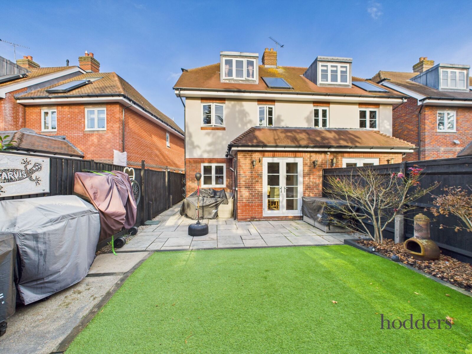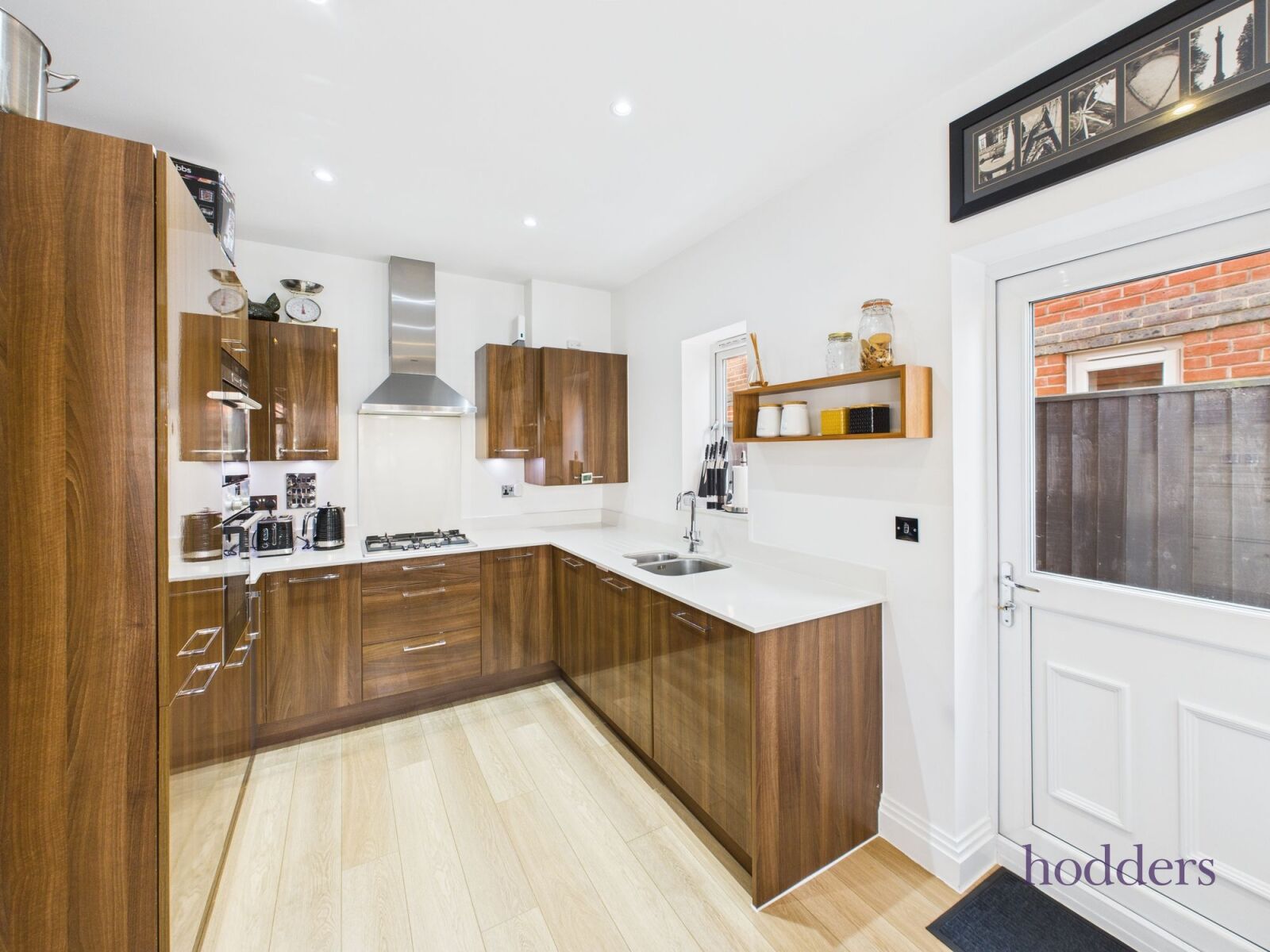 On the ground floor, there is a modern fitted kitchen with ample space for a table and chairs, enjoying views to the front and access to the side garden. To the rear, the spacious lounge/dining room provides a welcoming space for relaxation and entertaining, with French doors opening onto a beautifully enclosed rear gardenperfect for families and outdoor enjoyment.