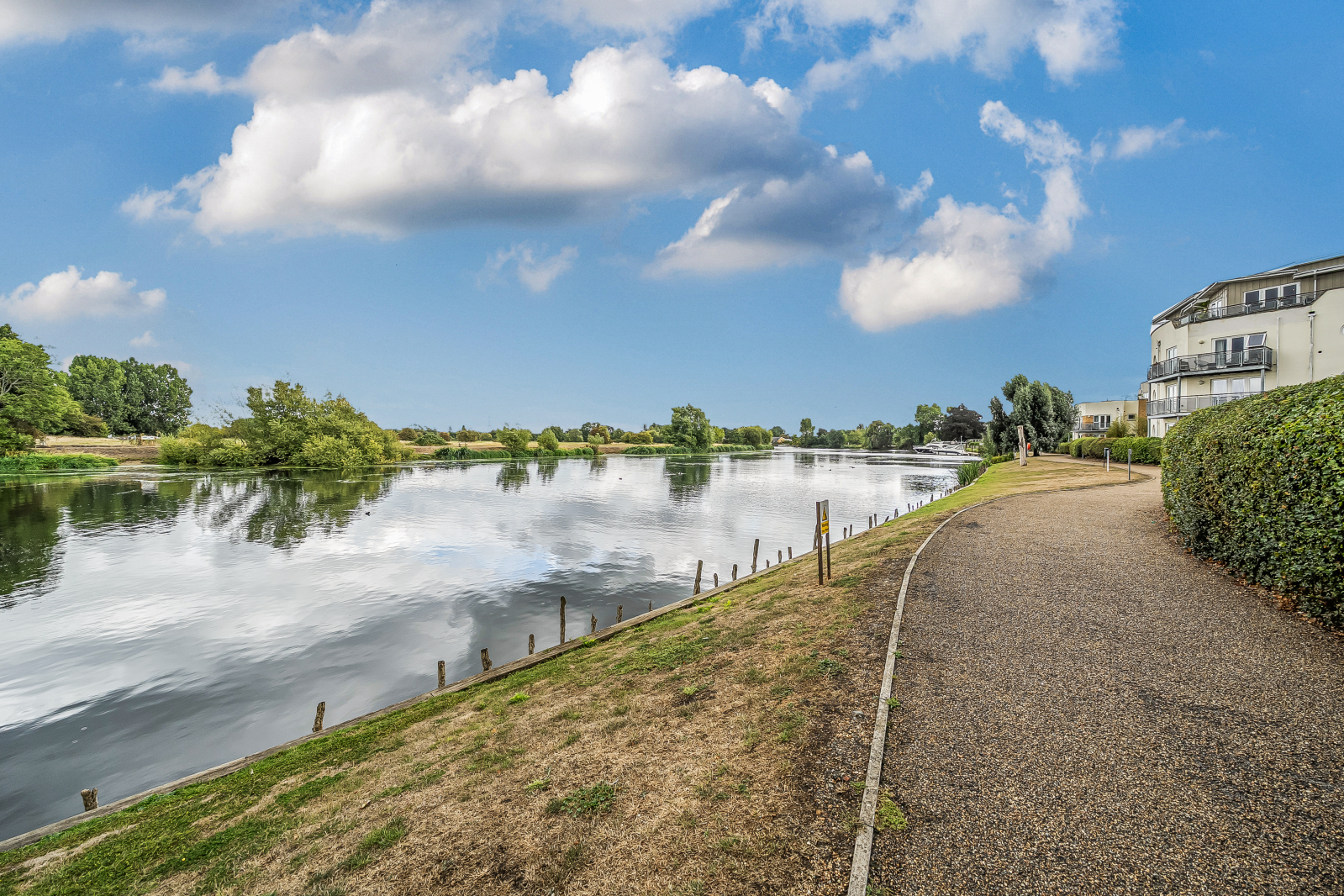 Well-Presented Two-Bedroom Ground Floor Flat with Patio Garden Riverside Location.Situated in a peaceful setting beside the River Thames towpath, this charming ground floor flat offers comfortable living in an idyllic location. Just a short drive from the M25, its ideal for those seeking both tranquillity and convenience. The property features two good-sized bedrooms, including a main bedroom with en suite, a spacious reception room, modern bathroom, and separate kitchen. Bright and well-maintained throughout, it also benefits from a private patio gardenperfect for relaxing outdoorsand allocated parking.With scenic riverside walks on your doorstep and excellent transport links nearby, this home offers a fantastic lifestyle opportunity in a sought-after location.