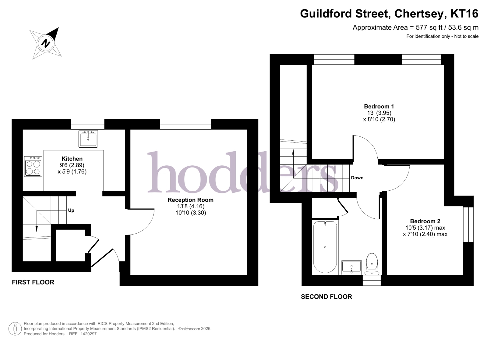 Located in the heart of Chertsey town centre, this well-presented two-bedroom split-level apartment offers the rare advantage of allocated parking. Set across the first and second floors of an attractive three-storey period building, the property provides spacious and well-balanced accommodation.The first floor features a generous reception room and a modern fitted kitchen complete with a range of eye and base units. On the second floor, you will find two double bedrooms and a contemporary three-piece bathroom suite.Ideally positioned for convenient access to local shops, restaurants, and everyday amenities, the apartment is also within easy reach of Chertsey railway station and River Bourne Health Club. Excellent transport links include swift access to the M25 motorway, with direct rail services to London Waterloo station in under an hour during peak times.