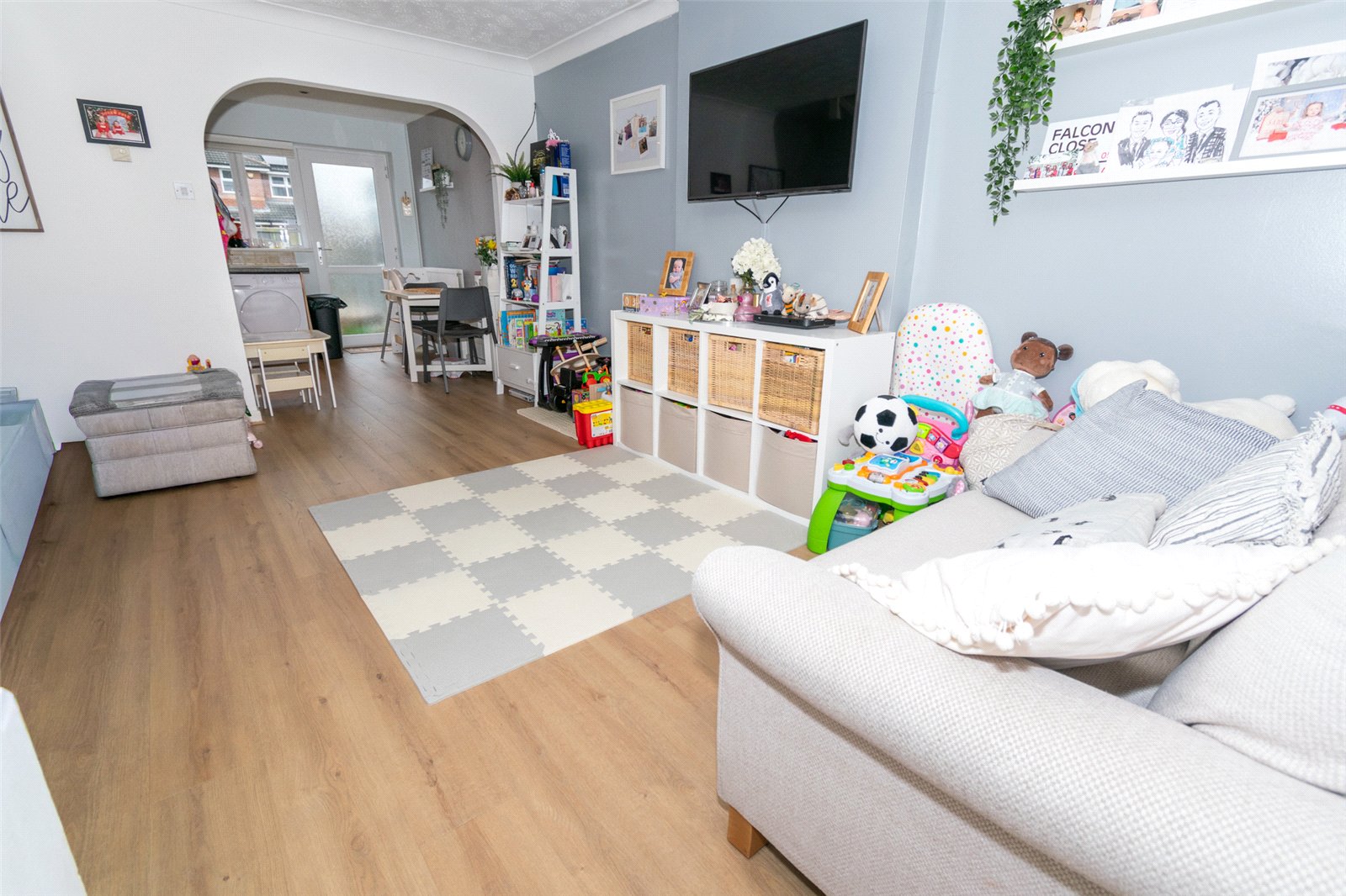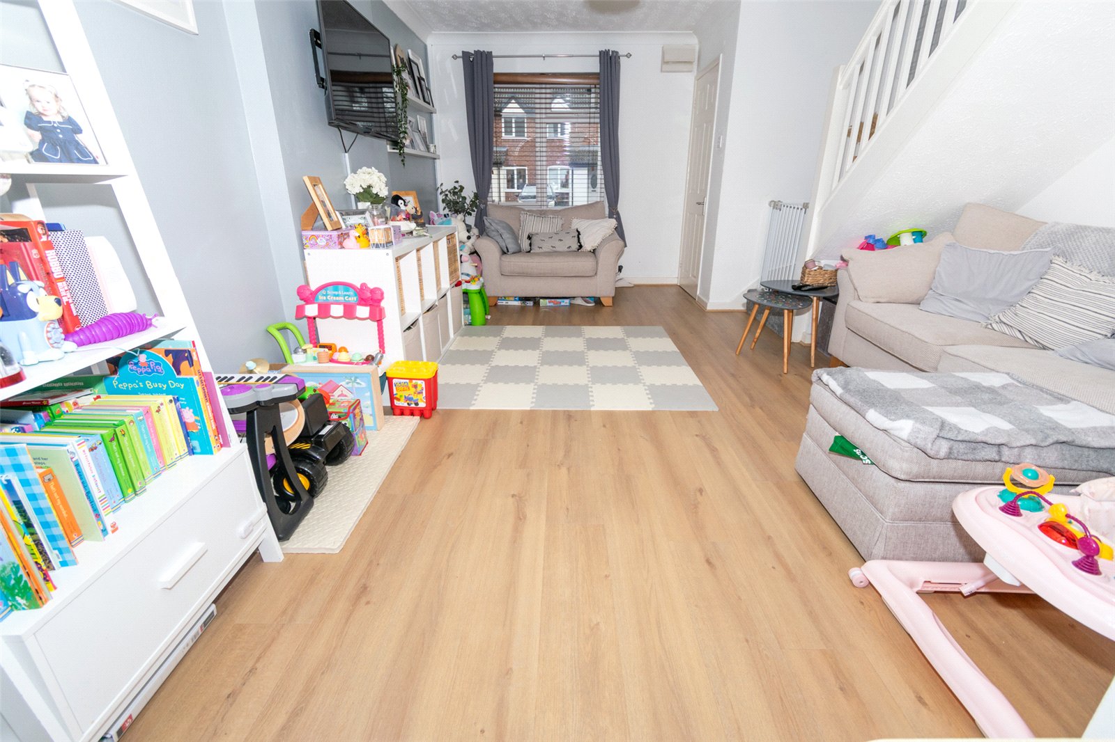 A spacious and well-presented home which will be perfect for either a first-time buyer or those looking to downsize. It will also be attractive to buy to let investors and is sure to generate an attractive rental return. This spacious end-terrace property is ideal for any buyer looking for a ready to move in home, well-presented throughout with tasteful and neutral decor meaning any lucky buyer can drop their bags and move in. The property is ideally situated on a highly sought-after development and offers well-proportioned accommodation of approximately 661 Sq.ft. When you walk through the front door a small entrance hall provides access to the lounge. The light and airy living room is an ideal place to relax whilst to the rear of the property is a superb kitchen/diner well fitted with modern units. This is a great entertaining space with space for a table and chairs and a door leading straight out to the garden. To the first floor are two good sized double bedrooms and a modern bathroom. Externally there are two allocated parking spaces with a private and well-maintained west facing garden to the rear. Sure to be of interest to many and certainly one not to be missed!