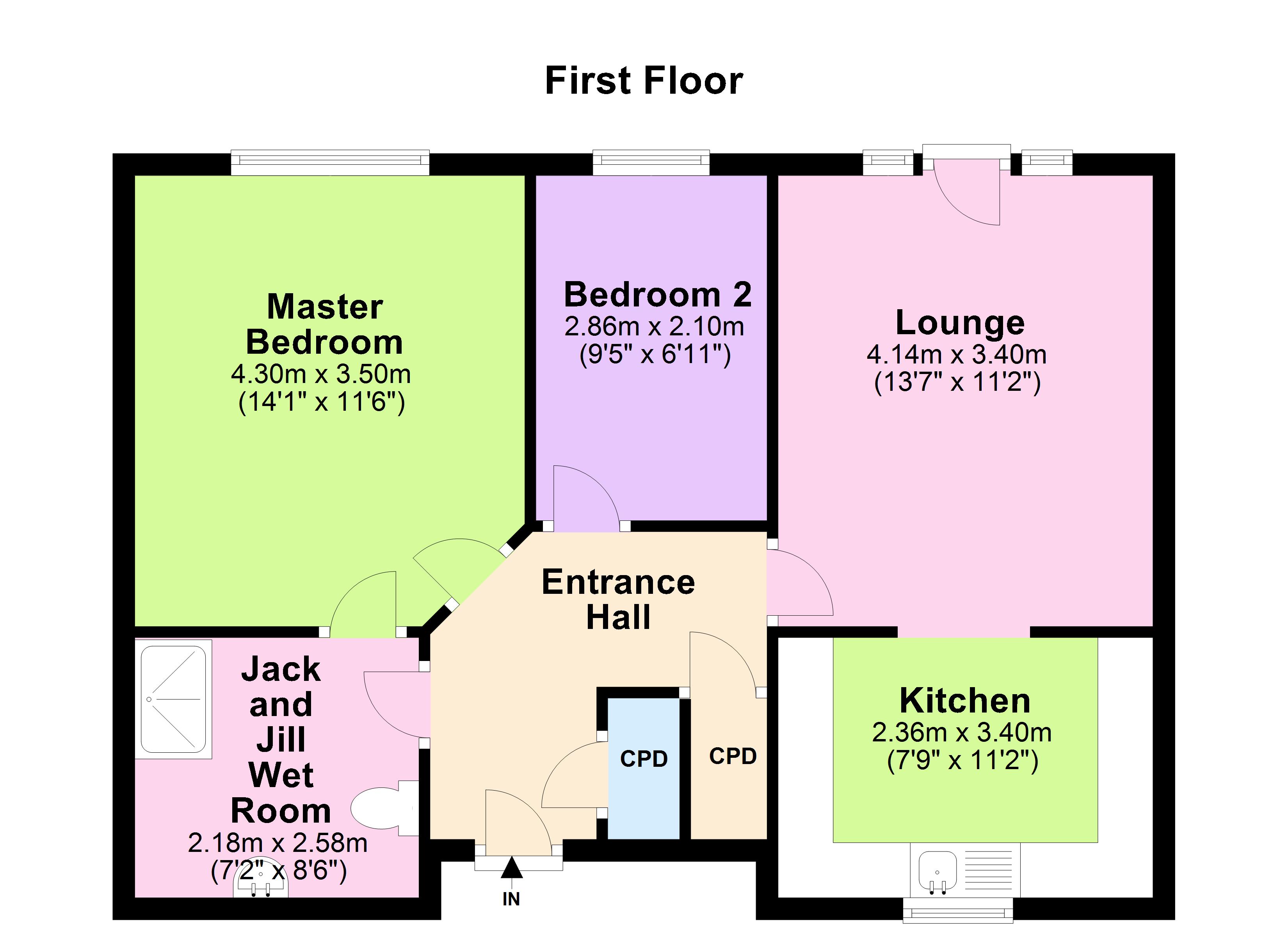 Jack & Jill Wet Room 7'2" x 8'6" (2.18m x 2.6m).