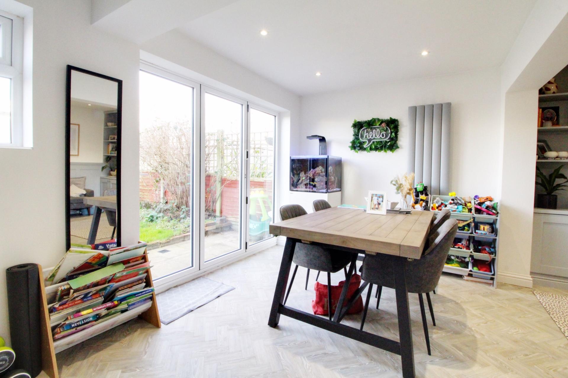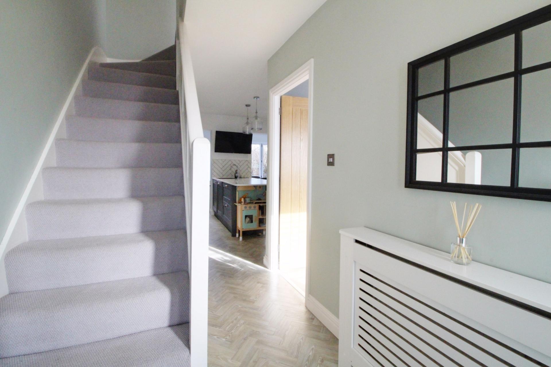 A 3 bedroom terraced home which has been completely refurbished to an extremely hight standard. The property benefits from a Super room incorporating kitchen/living/dining with bi-folding doors. There is a separate living room to the front and a downstairs cloakroom. Upstairs there is a family bathroom with a shower and bath, 3 bedrooms, all rooms have shutters. Private rear garden. Other key points worth noting are: A double garage with electric roller approached via a service road, a stone’s throw away from Flamstead End primary school. Vendors have found a property. Off street parking for 2 cars.