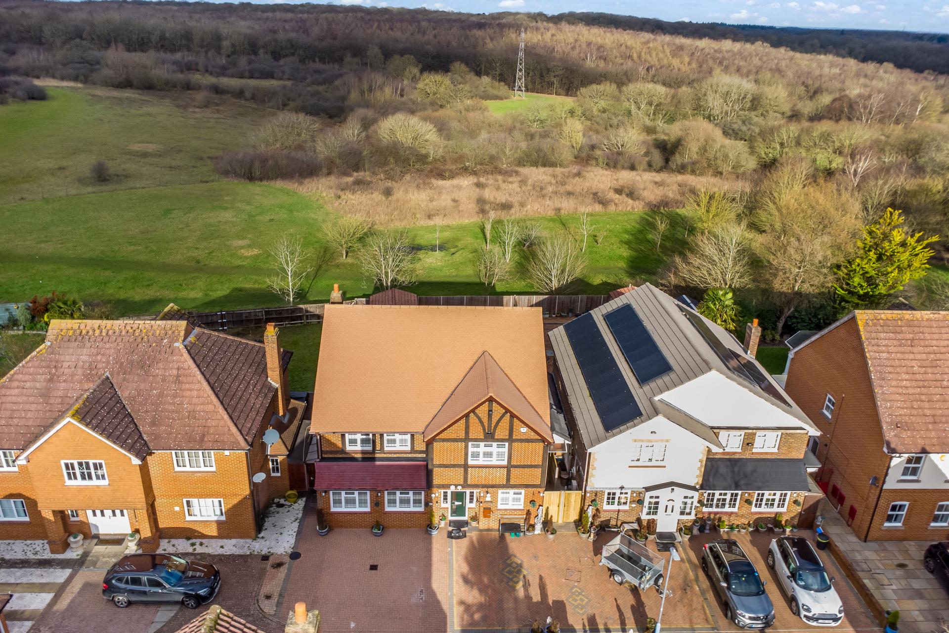 Set within a quiet cul-de-sac and backing directly onto open fields, this spacious five bedroom, three bathroom family home offers versatile accommodation in a peaceful and desirable setting. The property is entered via a generous hallway leading to four reception rooms. These include a former double garage that has been thoughtfully converted into a bedroom suite, offering excellent flexibility and easily adaptable as a games room, playroom, or additional living space if required. The ground floor also features a well appointed kitchen/breakfast room with access to a separate utility room, along with a living room, dining room, study, and a cloakroom. To the first floor are five well proportioned bedrooms. The master bedroom benefits from a dressing area and en-suite shower room, while the guest bedroom also enjoys an en-suite shower room. A modern family bathroom serves the remaining bedrooms. Externally, the property offers a paved rear garden backing onto open countryside, along with off street parking to the front.