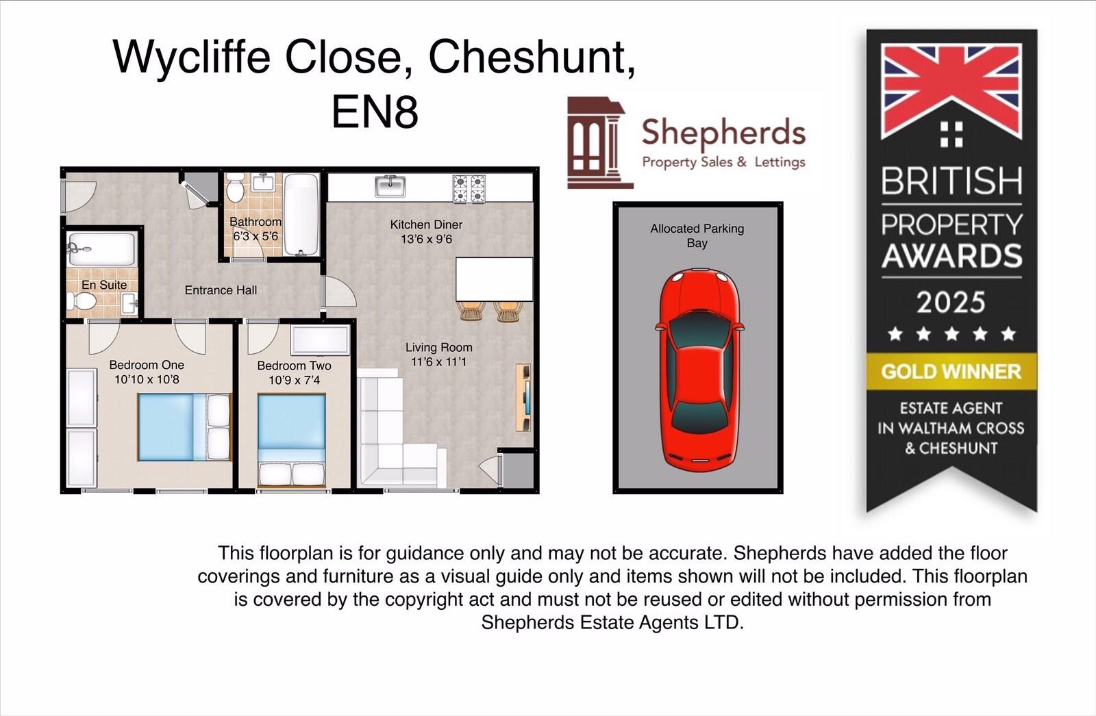 An impressive two-bedroom ground floor flat, set within a modern block just off Cheshunt High Street. The property offers a bright and spacious open-plan kitchen diner and living room, with the kitchen benefitting from integrated appliances including a fridge freezer, washing machine and dishwasher. There are two well-proportioned double bedrooms, the main of which features a stylish en suite shower room, while the entrance hall leads to a stylish main bathroom and useful storage cupboard. Further highlights include an allocated parking space, gas central heating and double glazing throughout, with the added advantage of being only a short distance from Cheshunt train station. Owner has mentioned that the property can be sold fully furnished and with CCTV. CHAIN FREE SALE