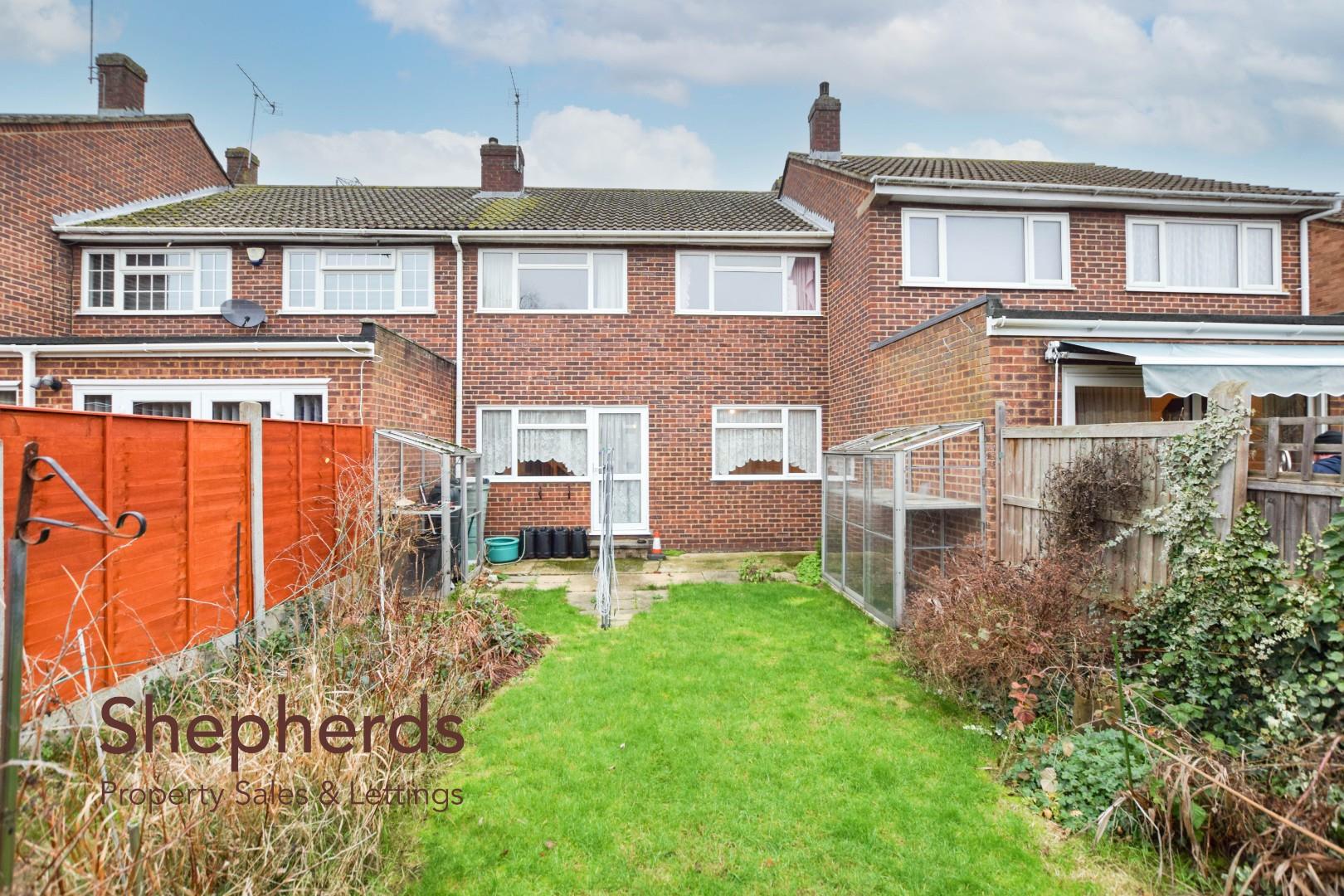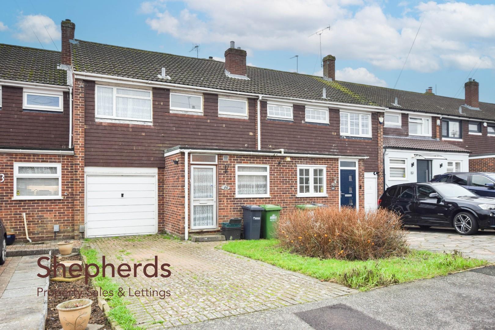 Shepherds Estate Agents are pleased to market this three-bedroom terraced property, offering an excellent opportunity for buyers seeking a well-located home with scope for extensions (subject to permissions) and great potential throughout. The property comprises of a spacious lounge/diner, separate kitchen, three well-proportioned bedrooms, a family bathroom and a separate WC. Outside, the property benefits from a front driveway, garage, and a south-facing rear garden. Conveniently situated close to well-regarded primary and secondary schools, along with excellent transport links and local amenities, including Brookfield Farm Shopping Centre. OFFERED CHAIN FREE.