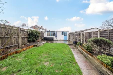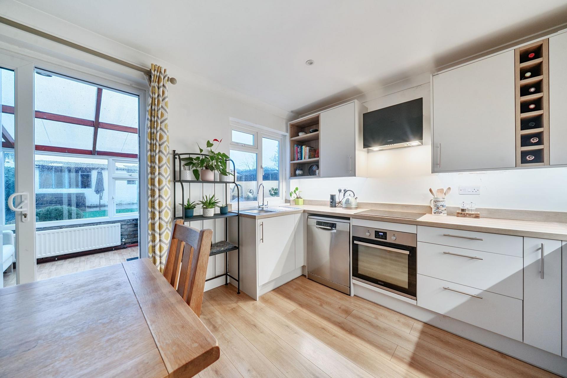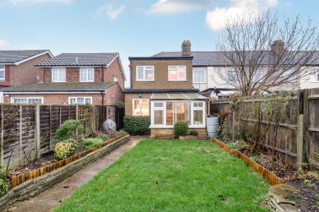 Set in a popular residential location, the home features a contemporary kitchen and dining area with plenty of worktop and storage space—perfect for daily meals or entertaining. The bright reception room is filled with natural light, creating a welcoming and comfortable environment. All three bedrooms are generously sized, with two doubles and a single, providing excellent space for family or guests. The ground floor includes a stylish modern bathroom with separate small utility area, while a convenient shower room is located on the first floor. A rear conservatory provides additional living space, ideal as a playroom, study, or sun lounge, with views over the garden.
