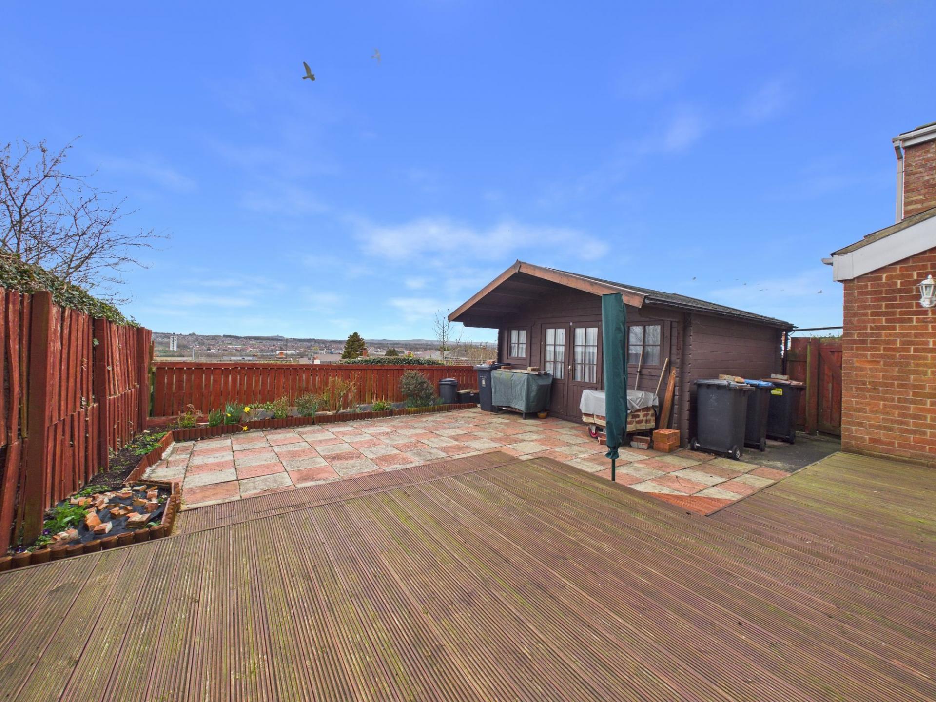 Externally, the property offers a neat lawned garden to the front, accompanied by a block-paved driveway providing off-street parking and access to the attached single garage. To the rear, a generously sized raised decked sun terrace creates the perfect space for outdoor dining and relaxing, or simply taking in the panoramic far reaching views. The remainder of the garden is predominantly paved with planted borders.