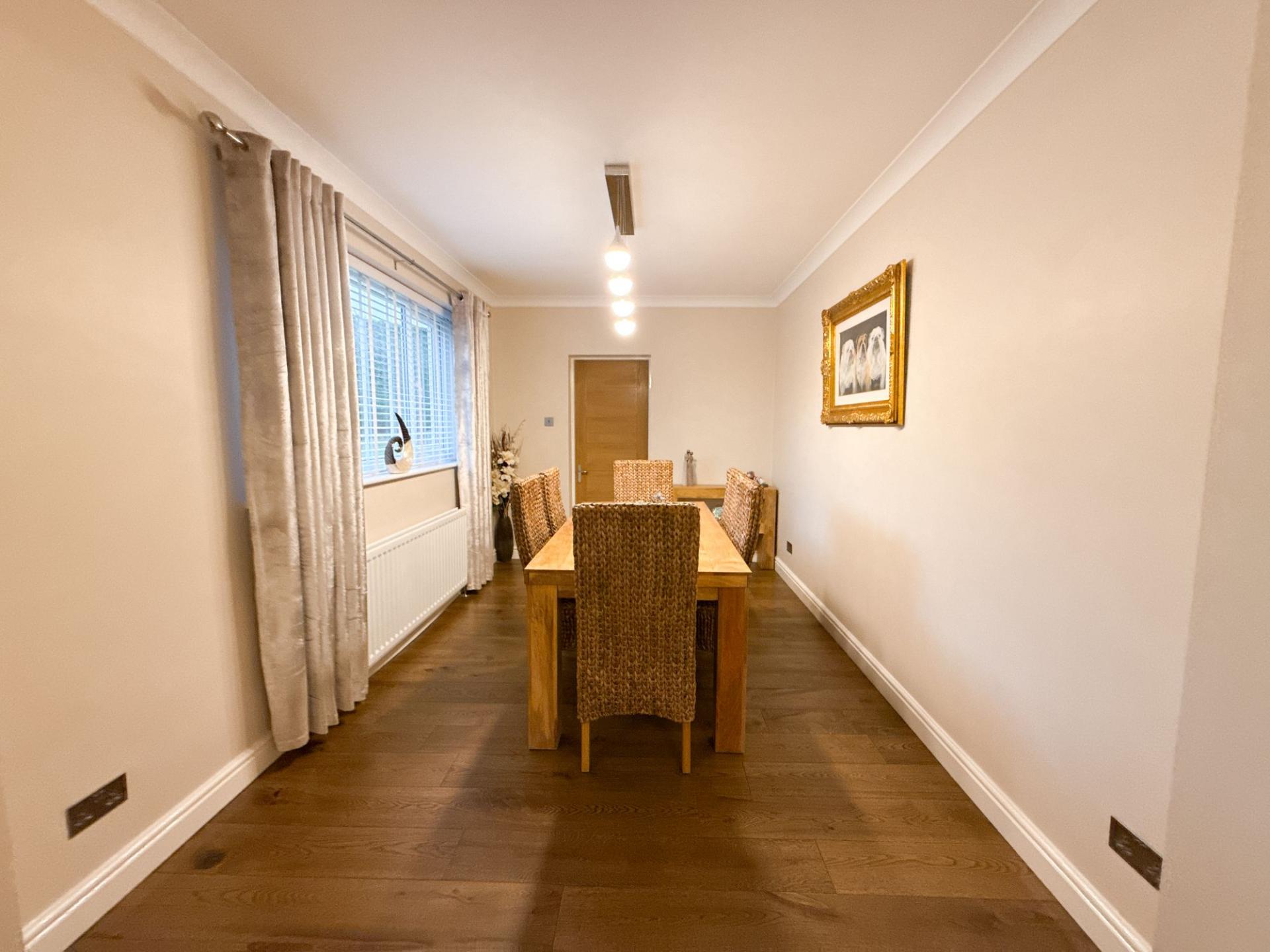The lounge also has open access to a formal dining area, offering an excellent space for family meals or hosting dinner parties. A further reception room, currently utilised as a comfortable family room/snug, provides great flexibility, ideal as an additional bedroom, hobby room, or playroom depending on your lifestyle needs. In addition, there is a useful home office/study.