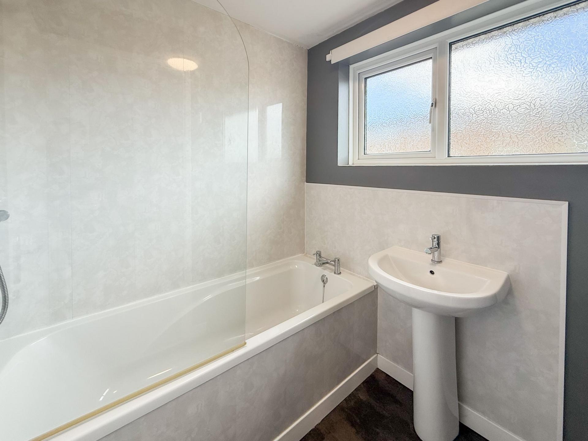 To the first floor, there are three well-proportioned bedrooms, each offering comfortable space and flexibility for use as bedrooms, guest rooms, or a home office if desired. The family bathroom completes this level, fitted with a white suite and a mains-fed shower over the bath, adding convenience for busy households.