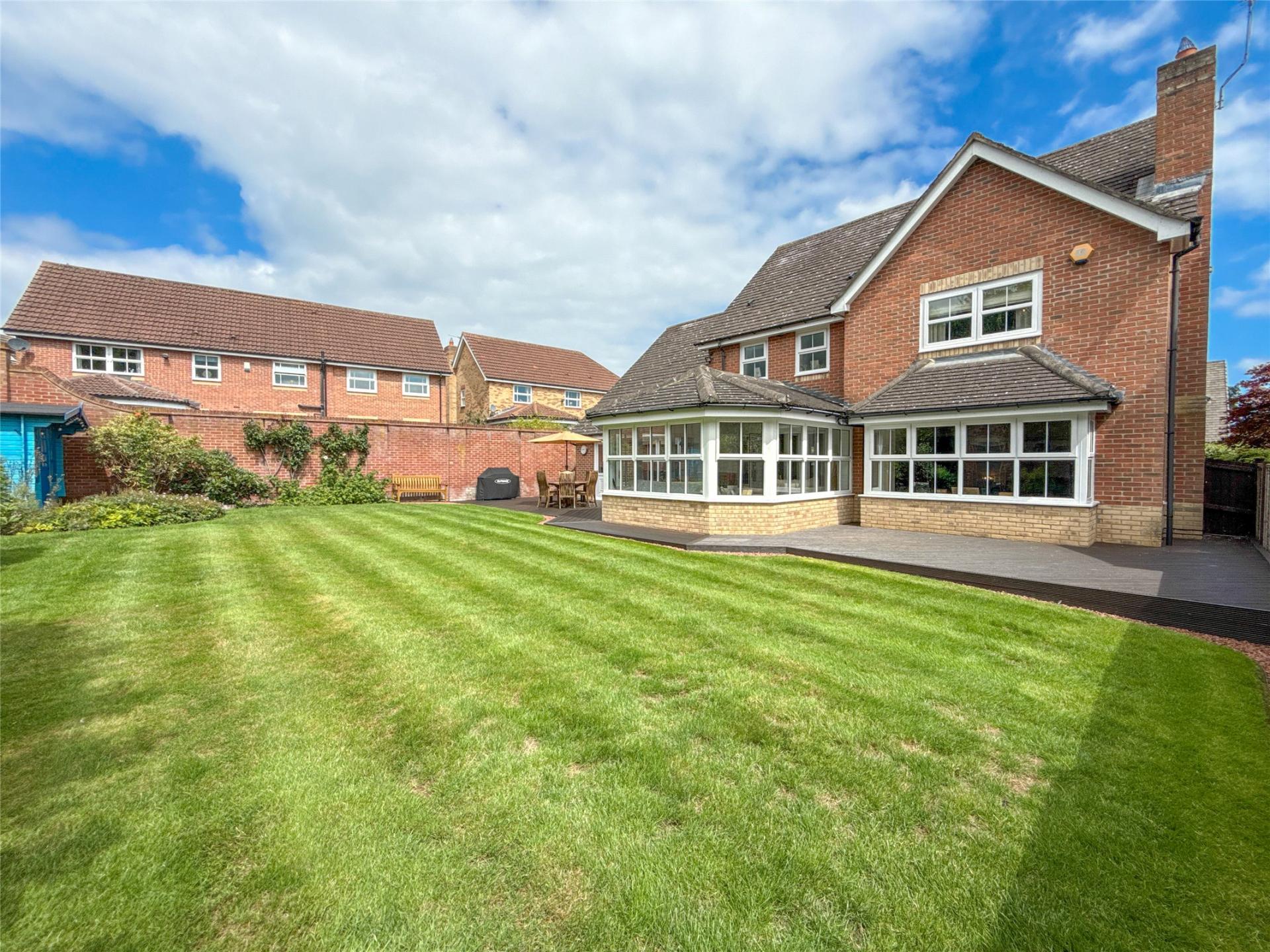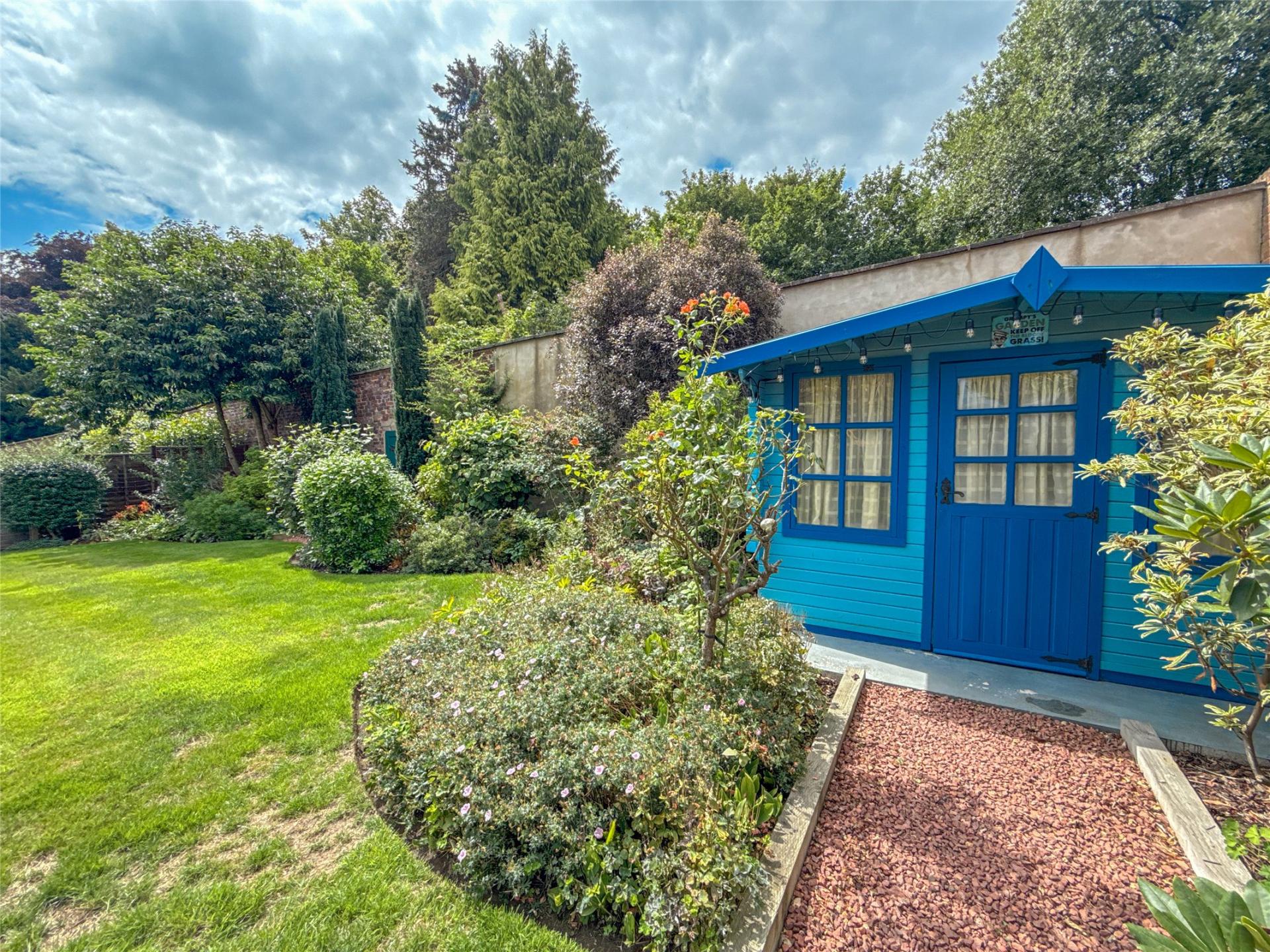 Externally, the home is surrounded by beautifully tended grounds that further elevate its grandeur. The front garden features a lawn framed by mature trees, alongside a paved driveway that offers ample off-street parking. The driveway in turn leads to the double integral garage. However, it is the rear garden that truly captivateswith its position within the historic walled enclosure, the space feels both regal and enchanting. A generous lawn, a decked sun terrace ideal for al fresco dining and entertaining, and an array of mature shrubs and flowering borders all combine to create a private oasis of calm and natural beauty. A charming secret garden door adds a whimsical and historic touch, evoking the timeless elegance of the estate's heritage. The garden backs onto mature woodland and benefits from a serene, semi rural ambiance.