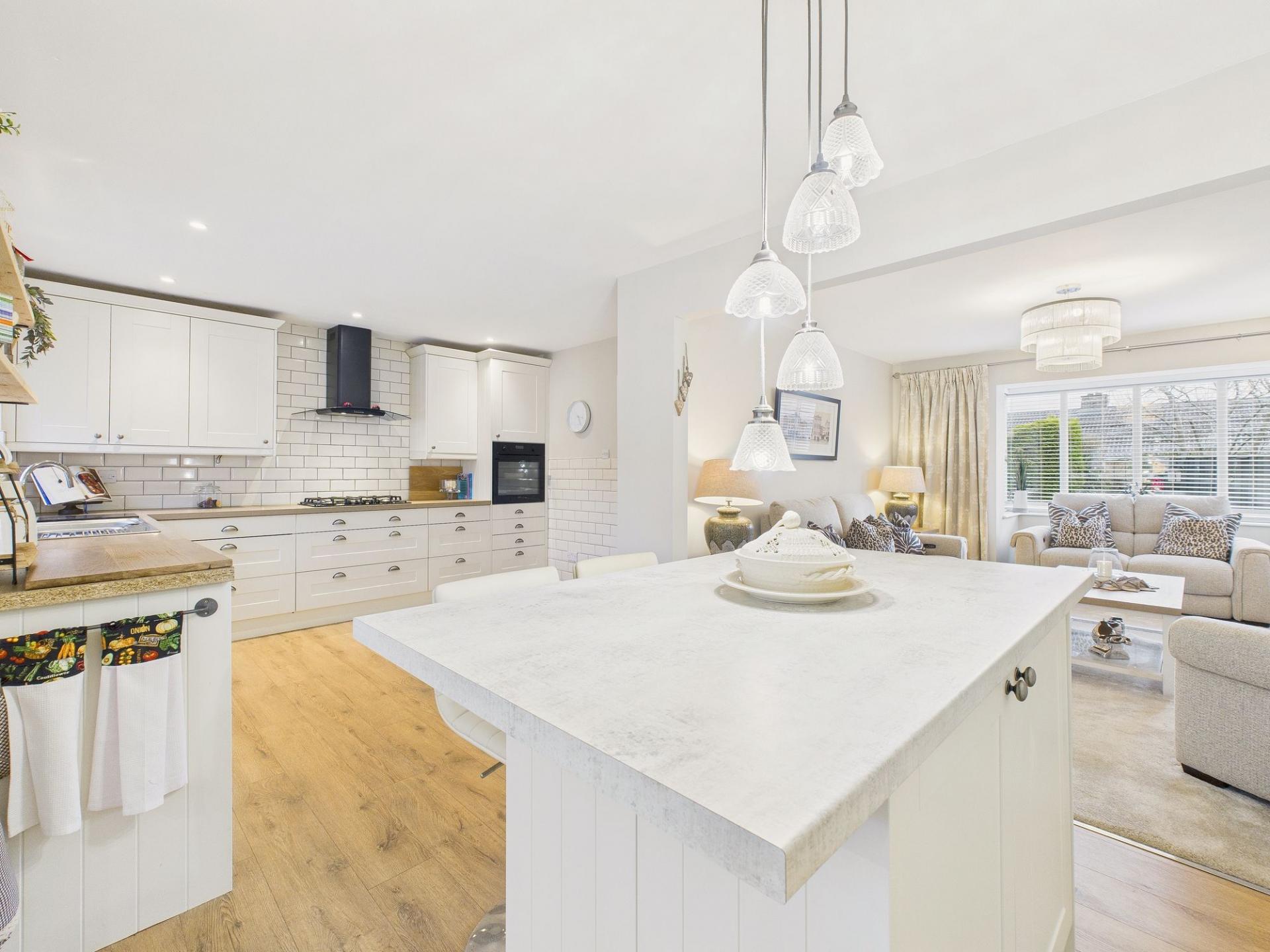 Internally, the accommodation is both stylish and highly versatile. A spacious and welcoming entrance hallway sets the tone. A stunning lounge is positioned to the front of the property. This elegant living space benefits from a bay window and enjoys open-plan access into the impressive kitchen and dining area, creating an ideal layout for modern family living and entertaining.