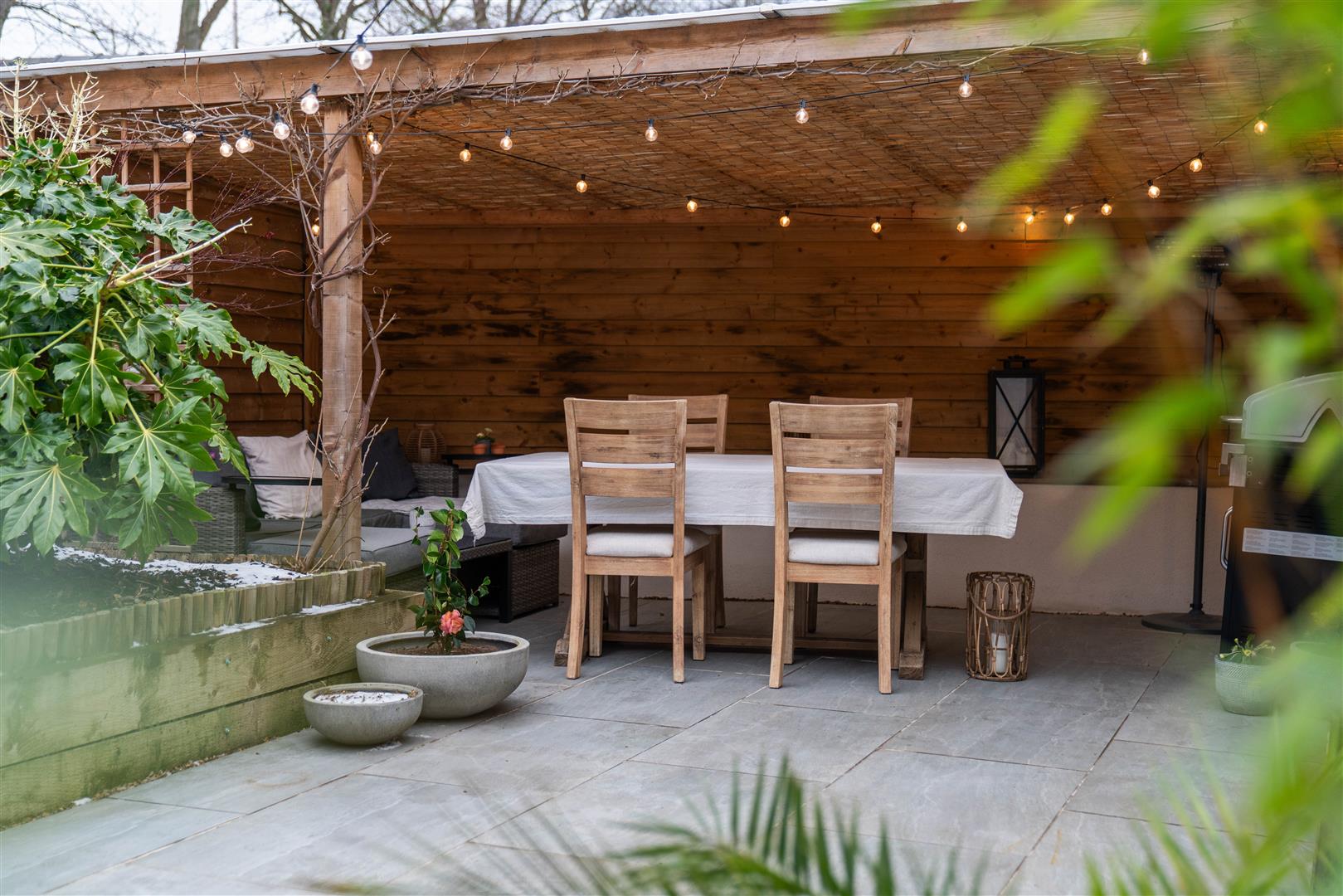 - Landscaped garden with social patio area
