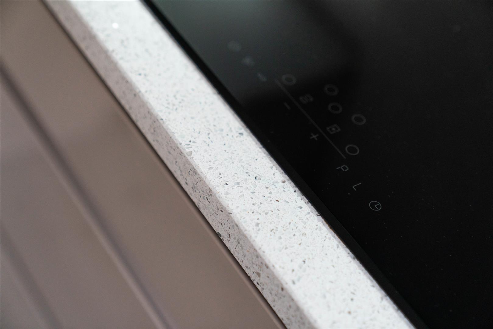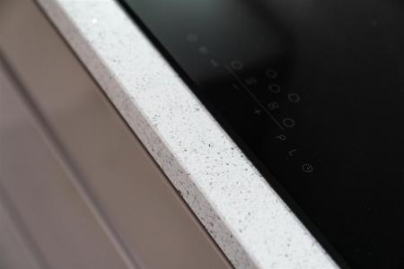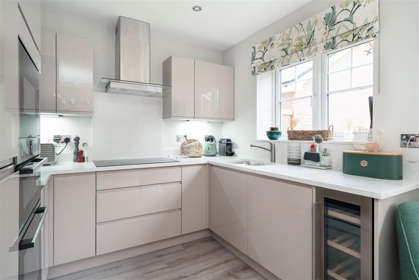 - Modern kitchen with quartz worktops and integrated dishwasher, fridge freezer, induction hob, microwave, oven and wine cooler