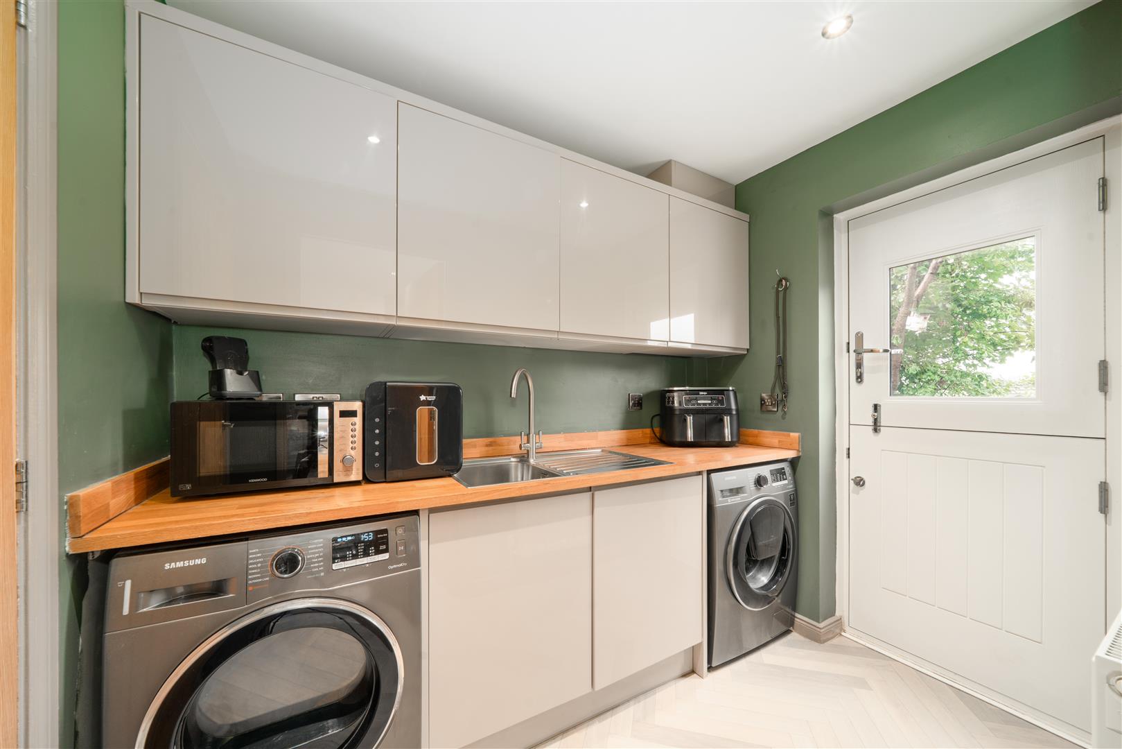 - Modern kitchen with a range of integrated appliances, separate utility room and solid wood worktops