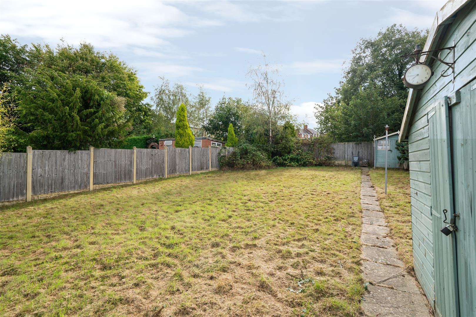 - Large rear garden with lawn and patio area